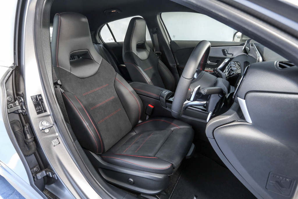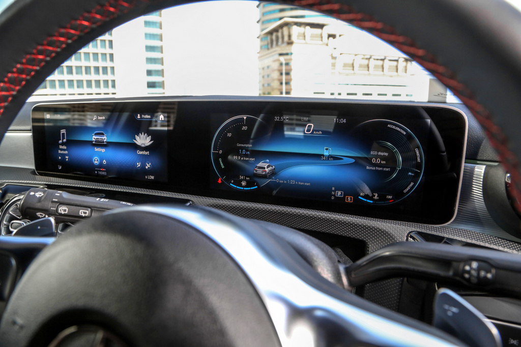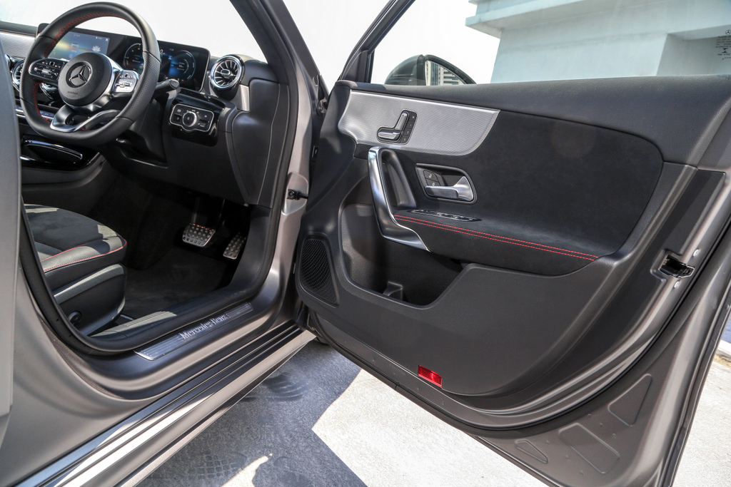 1. Penampilan hatchback premium itu mengambil ilham CLS baharu melalui rekabentuk lampu depan multisuluh LED runcing dengan gril trapezoidal. Bahagian sisi diserlahkan menerusi jarak roda panjang dan gerbang roda maskular yang memberikan profil jentera lebih panjang.