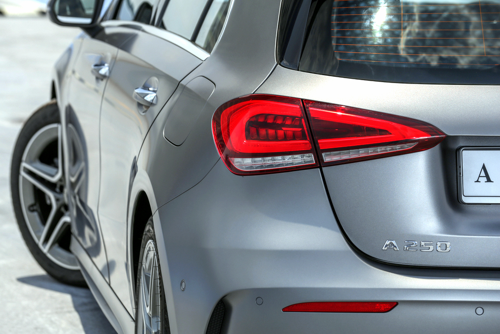 2. Belakang tampak lebar menerusi cermin direka menirus ke atas. Saiz rim 18 inci menguatkan imej sporty A-Class. Pekali seretan (Cd) juga dikurangkan kepada 0.25Cd.