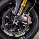 7. Bahagian brek menggunakan kaliper aluminium bilet Brembo GP4-MS dan sebagai tambahan kepada grip kaliper berkualiti MotoGP, model ini dipasangkan cakera kelas tinggi T-Drive yang diambil daripada jentera Kejuaraan Superbike Dunia (WorldSBK) dan MotoGP.
