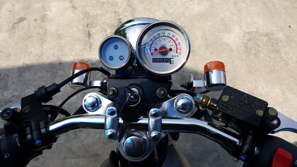 6) Posisi tunggangan yang sedikit ke belakang kerana bentuk tangkinya yang panjang. Pemijak kaki juga berada di posisi ke belakang.