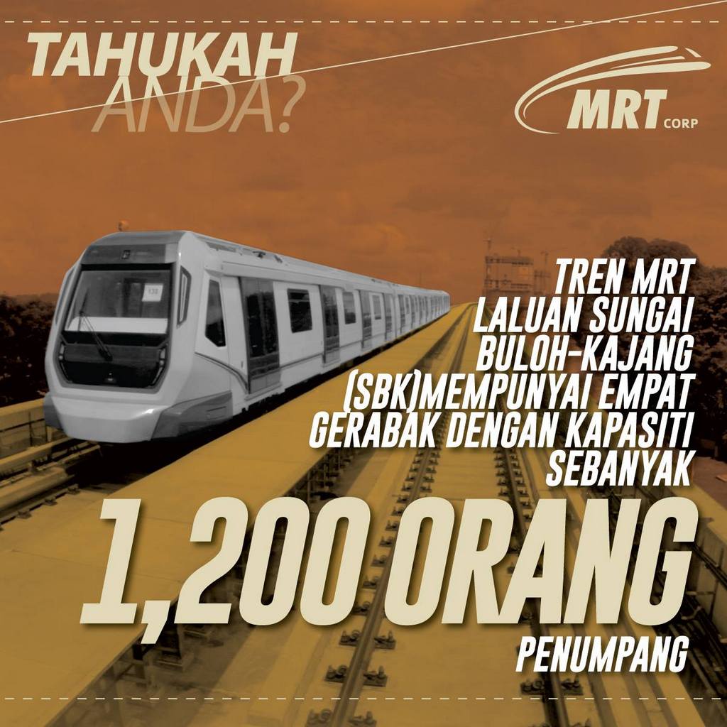 Tahukah anda, tren MRT empat gerabak ini mampu memuatkan sehingga 1,200 penumpang pada satu masa sama.