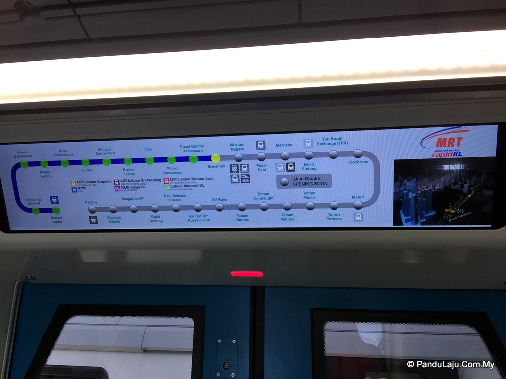 Untuk kemudahan penumpang, setiap tren dipadankan informasi perjalanan termasuklah stesen-stesen akan dilalui menerusi papan digital. Bukan itu saja, ia turut memaparkan bahagian pintu yang akan dibuka bagi setiap stesen dilalui.