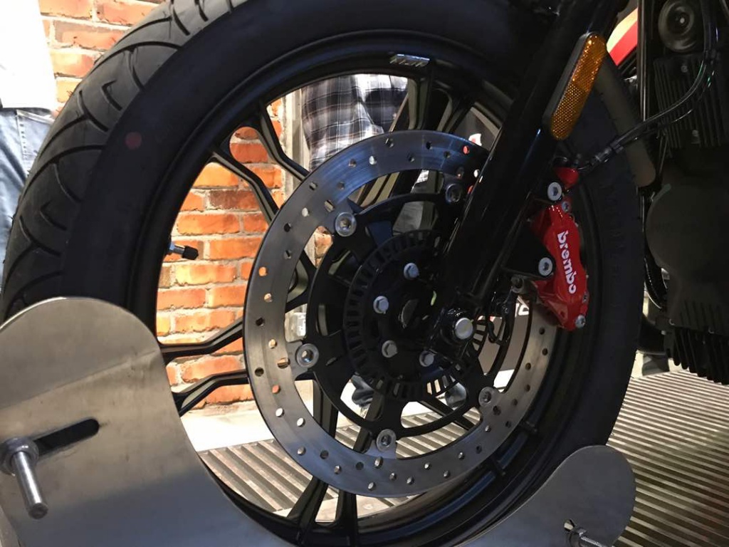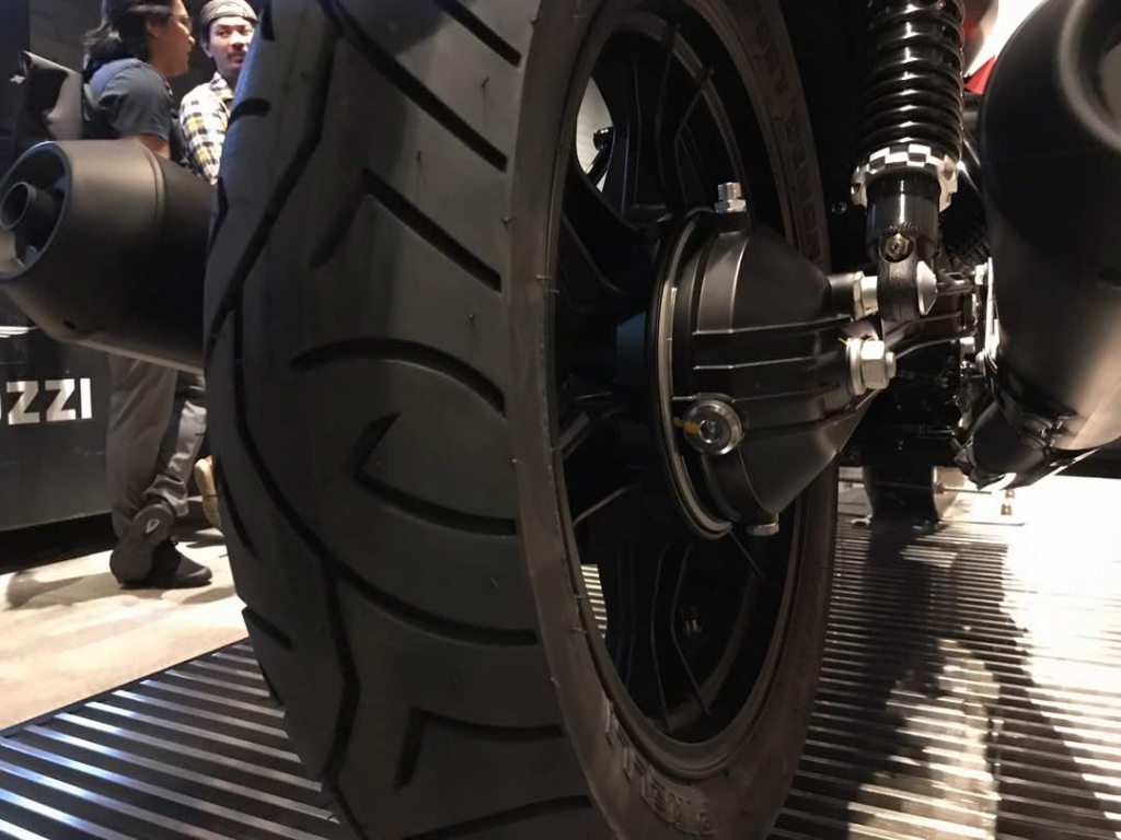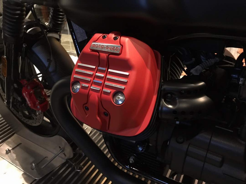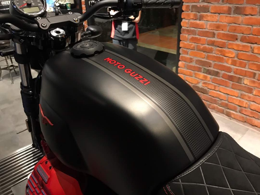 2. Didatangkan dengan penampilan hitam kusam penuh bersama padanan kaliper brek Brembo merah di depan, lambang V7 III di fairing sis dan lambang helang pada tangki minyak.