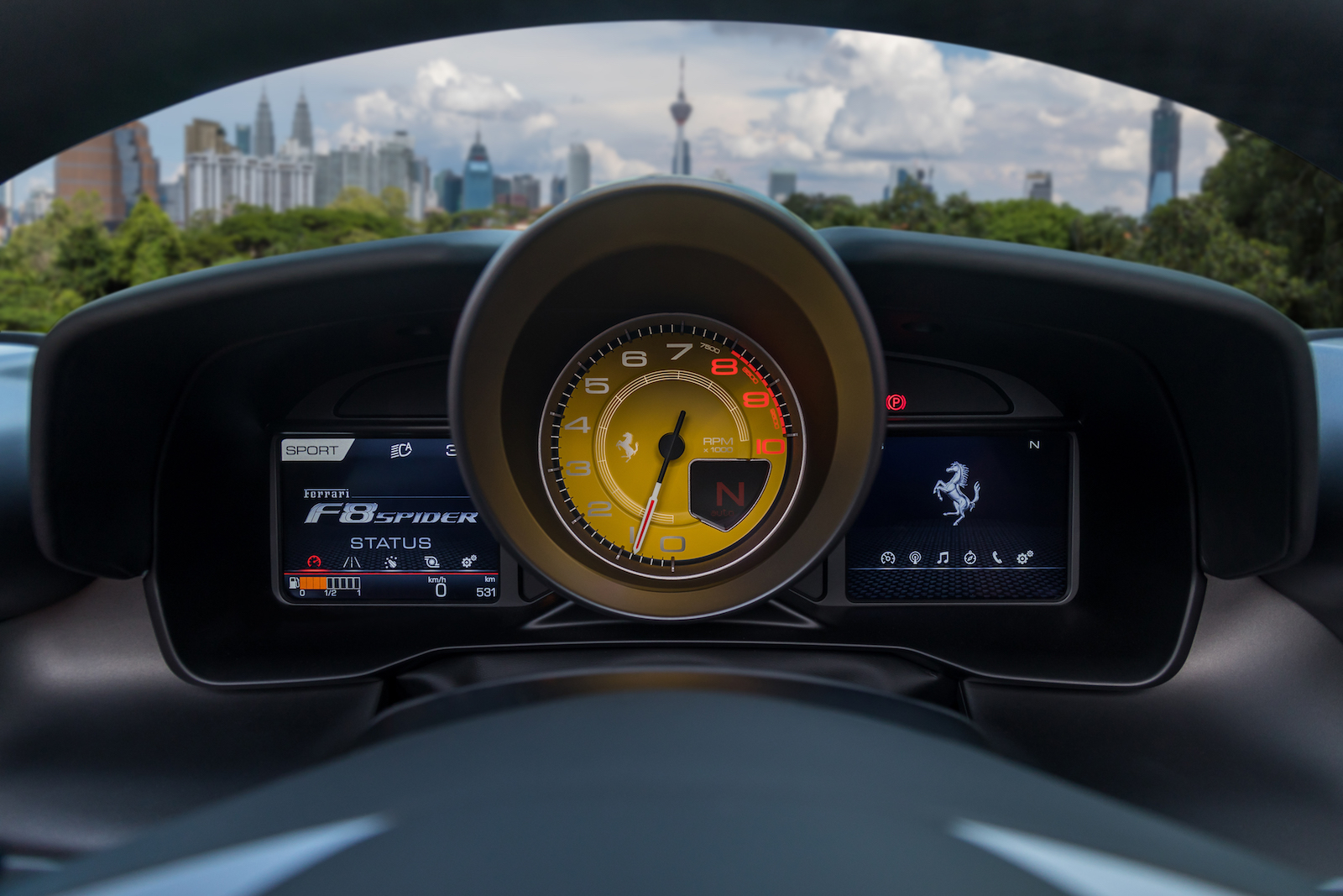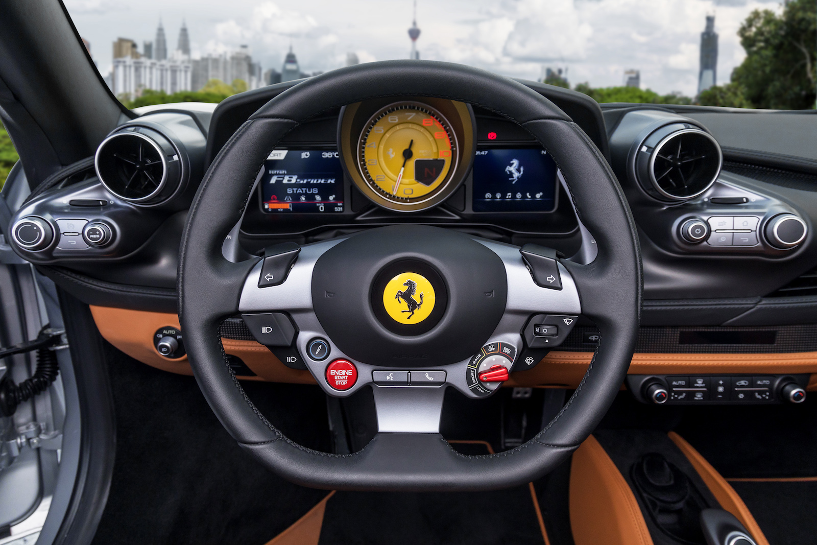 10. Papan pemuka F8 Spider mengekalkan gaya klasik yang berorientasikan pemandu dengan kerusi sport. Butang kawalan diatur atas stereng.