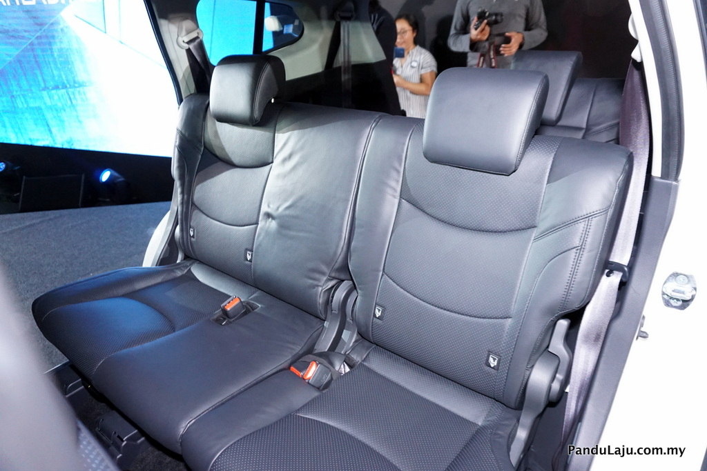 10. Kabin hitam tampak moden dan premium dengan padanan aksen krom bersama roda stereng dan tombol gear kulit. Konfigurasi kerusi 2-3-2 memberikan akses mudah ke tempat duduk barisan ketiga. Juga ada 13 pemegang cawan dalam kabin.