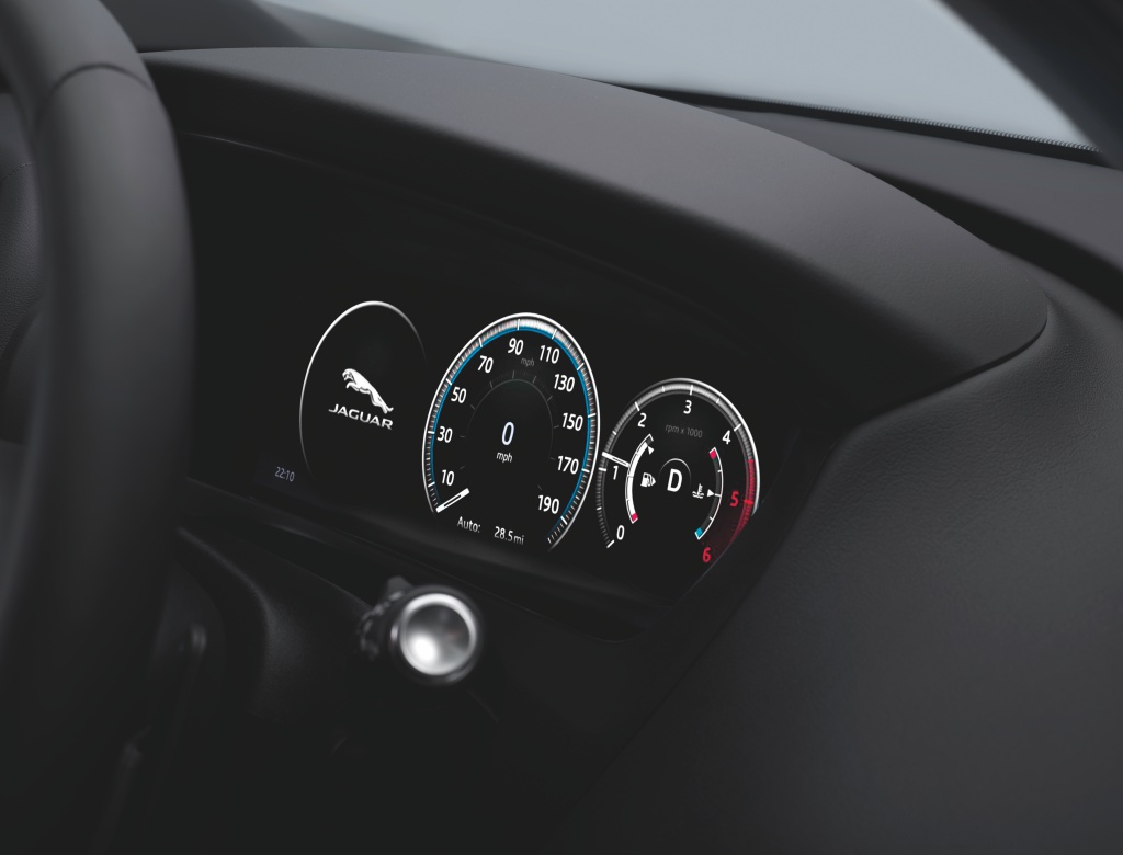 10. Versi spesifikasi tinggi, F-Pace R-Sport diberikan ciri tambahan Sistem Kamera Keliling 360°, Kawalan Jelajah Adaptif (ACC) dengan Bantuan Barisan (Queue Assist) dan kluster instrumen digital penuh 12.3-inci dengan empat tema grafik.