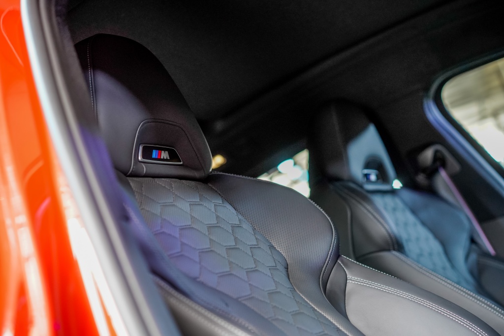 9. Aura M semakin terserlah menerusi ambien kabin M sporty dan elegan. Penumpang depan dapat melihat lencana M Competition pada sil pintu, termasuk kerusi dengan sokongan ventilasi aktif dan lumbar. Trim khas juga mencerminkan keunggulan bersama stereng kulit M, butang M Drive merah, dan butang mula-henti merah.