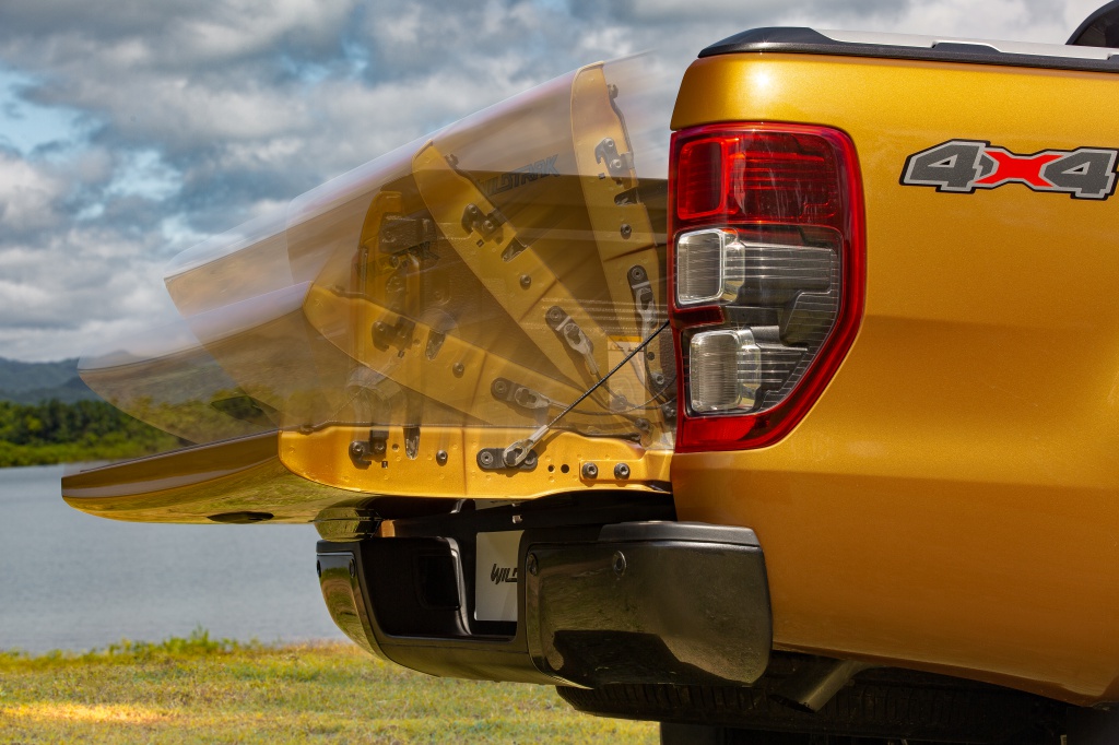 8. Cara buka but belakang lebih mudah dengan Wildtrak dan XLT+ menerusi pengenalan ciri Pengangkat Pintu But (Easy Lift Tailgate), pertama dalam kelas trak pikap. Dengan mekanisma dalaman baharu, pintu belakang Ranger kini lebih ringan untuk diangkat dan kurang 70 peratus tenaga diperlukan untuk menutupnya.