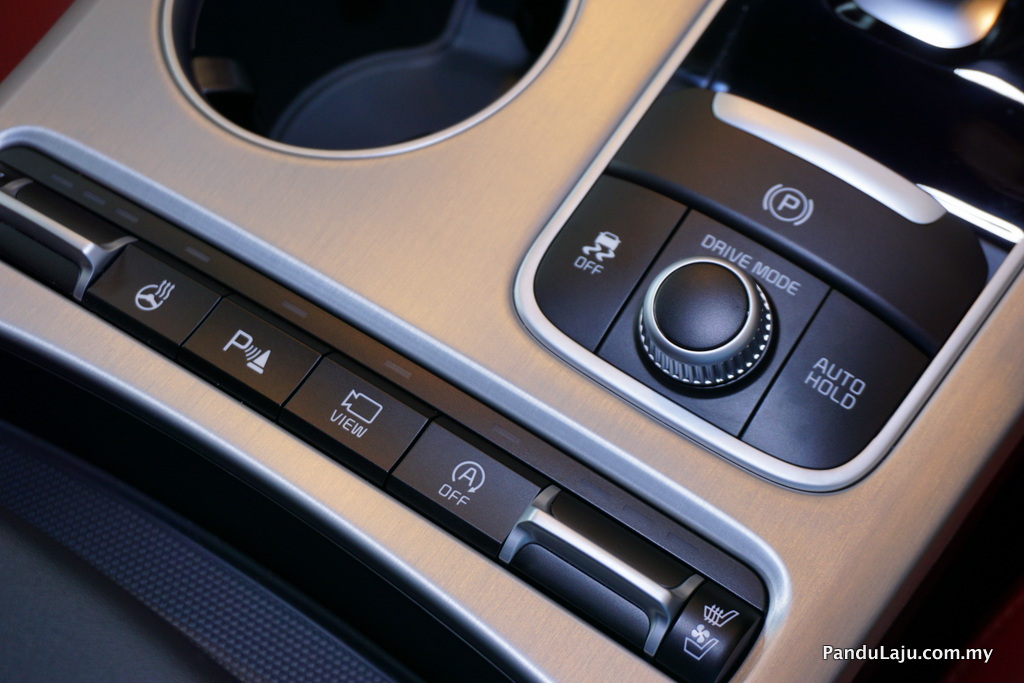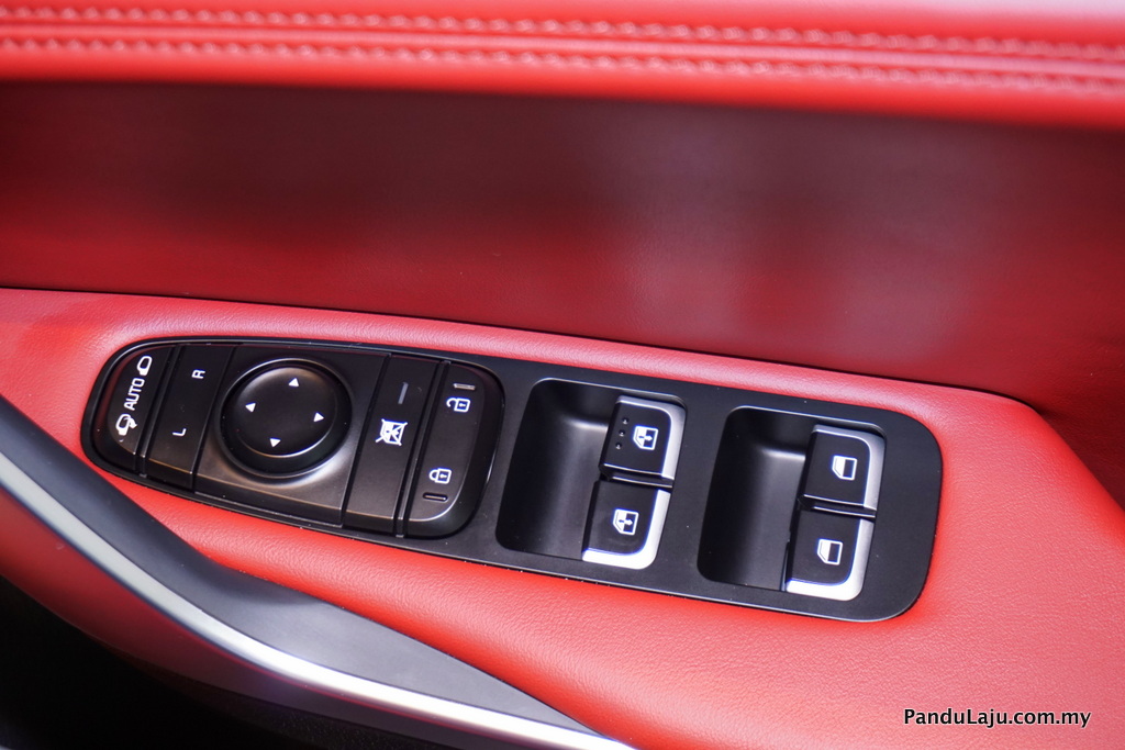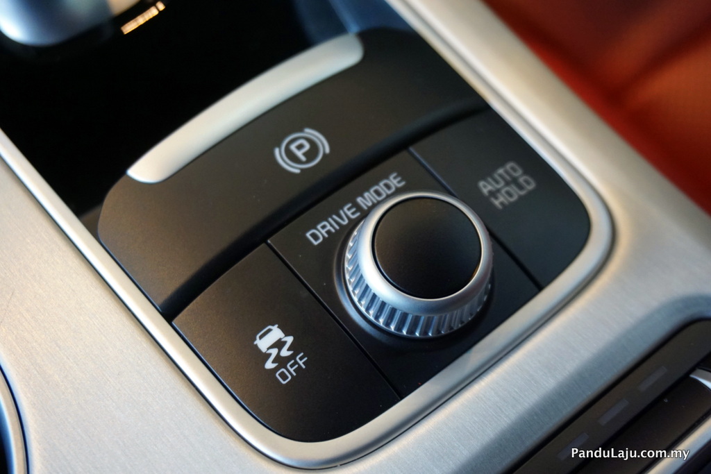 4. Kawalan transmisi Shift-by-Wire inovatif membolehkan pemandu menukar mod transmisi melalui kawalan elektronik. Suspensi dan stereng, sistem pacuan roda belakang (RWD) Stinger digabungkan sepenuhnya dengan 5 mod pacuan yang menawarkan penukaran berbeza antara keselesaan dan sport.
