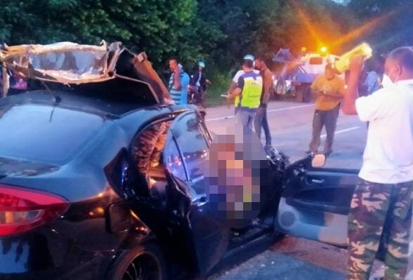 Kemalangan berlaku jam 6 pagi melibatkan, dan mangsa ialah pemandu dan penumpang Persona yang dikatakan melanggar bas yang tidak membawa sebarang pemumpang hingga menyebabkan kedua-dua meninggal dunia di tempat kejadian. Dua lagi penumpang belakang sedan tersebut mengalami cedera ringan, manakala pemandu bas tidak cedera.