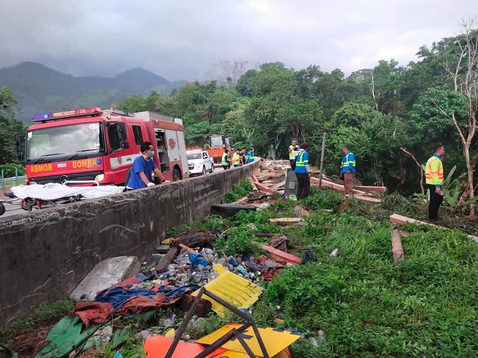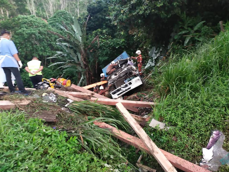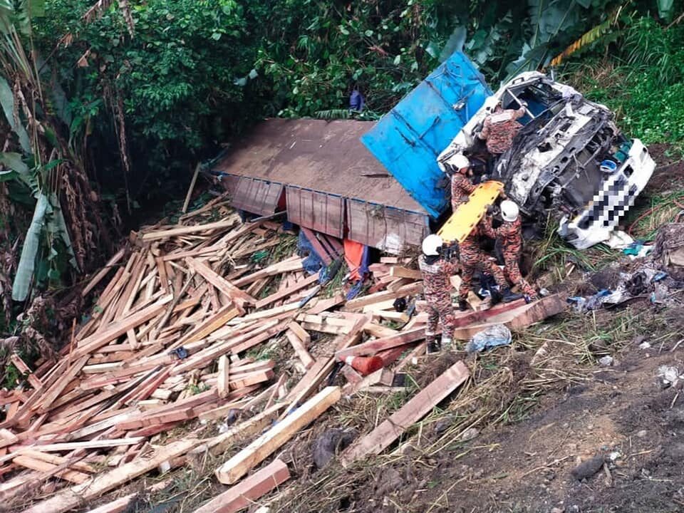 Kes kedua pula berlaku beberapa minit kemudian membabitkan treler muatan kayu bergergaji yang terbabas menjunam ke dalam gaung di lokasi sama.