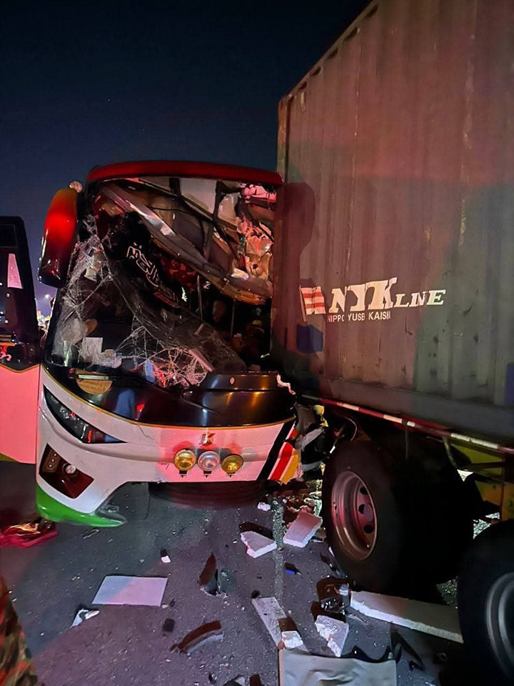 Tambah beliau, kemalangan melibatkan bas persiaran yang membawa 24 penumpang termasuk pemandu dan kelindan yang dilaporkan melanggar belakang lori kontena.