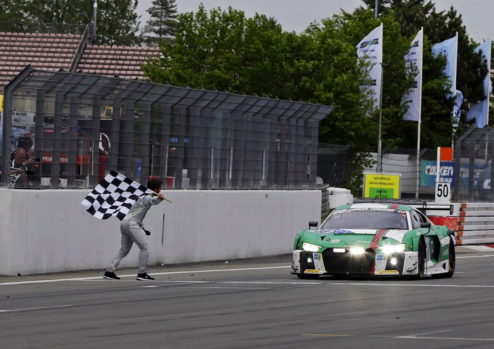 - Beberapa detik sebelum perlumbaan tamat, Audi Sport Team Land ialah pasukan pendahulu pertama yang menukar kepada tayar hujan.