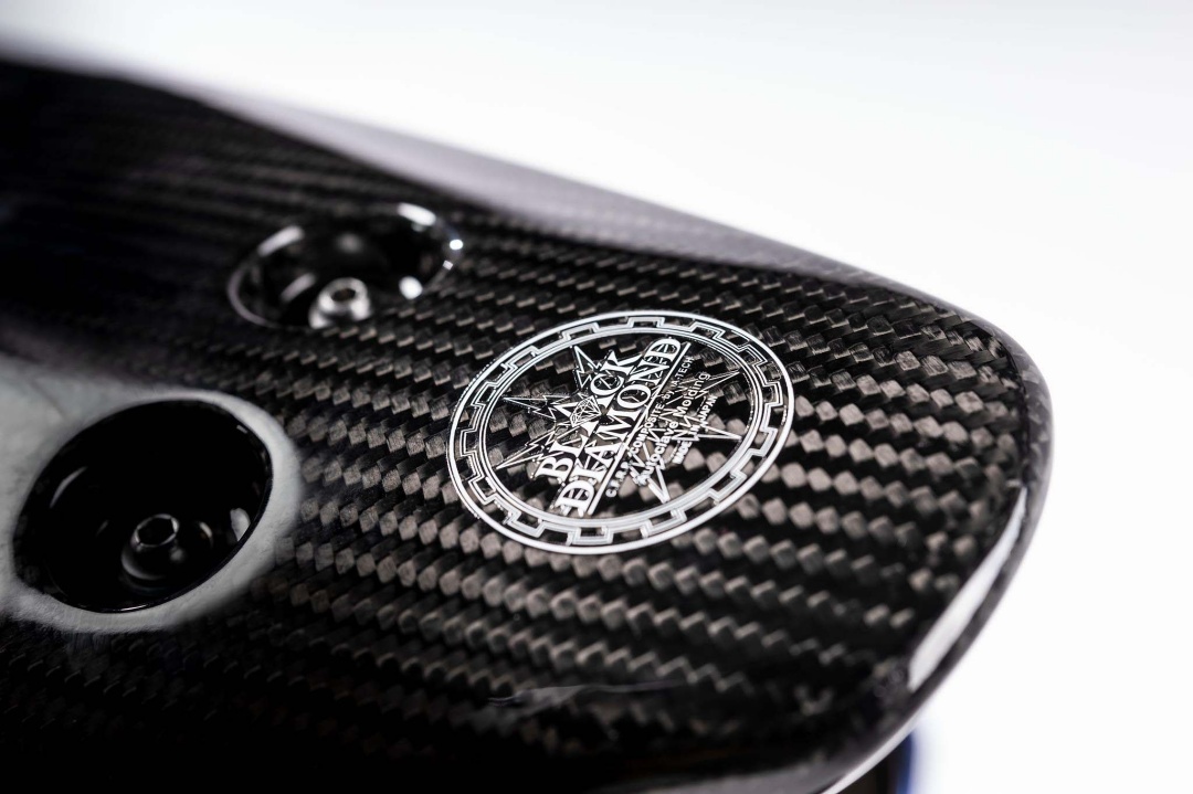Imej tersebut membolehkan kita melihat perincian komponen lebih dekat dan jelas. Berdasarkan foto ditunjukkan, bahagian badan menggunakan komponen gentian karbon asli A-tech jenis CFRP (Carbon Fiber Reinforced Polymer), dinamakan ‘Black Diamond’.