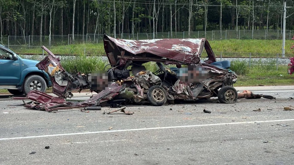 Insiden kira-kira jam 4 petang itu melibatkan sebuah van dinaiki lima sekeluarga, sebuah lori treler dan sebuah lori kargo.