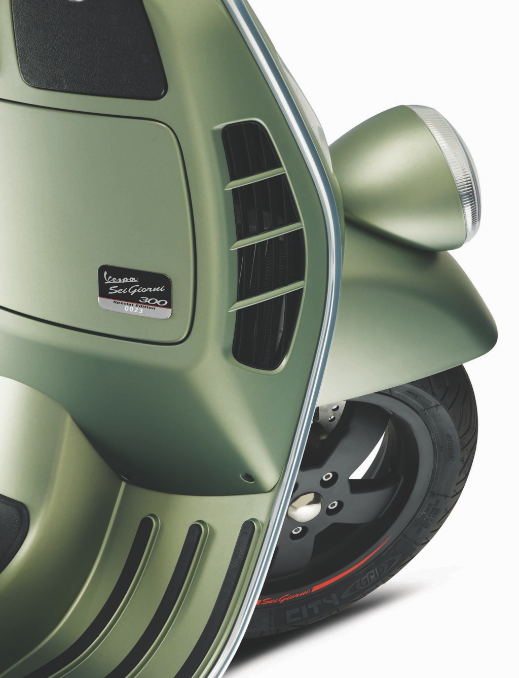 Skuter itu juga dipadankan dengan pelana acah tunggal bagi memberikan imej sporty. Vespa Sei Giorrni menggunakan enjin 300cc silinder tunggal 4-injap yang menghasilkan kuasa 21.2hp dan tork 22Nm. Tidak ketinggalan turut tersedia port USB dan Sistem Brek Anti-Kunci (ABS). Tersedia dengan warna hijau, Vespa Sei Giorni berharga RM38,000 seunit.