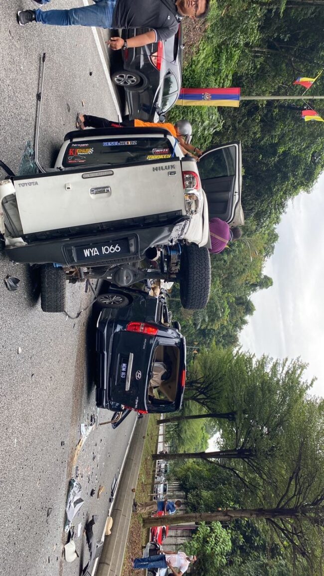 Menurut bomba, kemalangan berlaku apabila MPV dinaiki mangsa yang menghala ke bangunan Parlimen bertembung dengan pemandu Hilux yang hilang kawalan hingga memasuki laluan bertentangan.