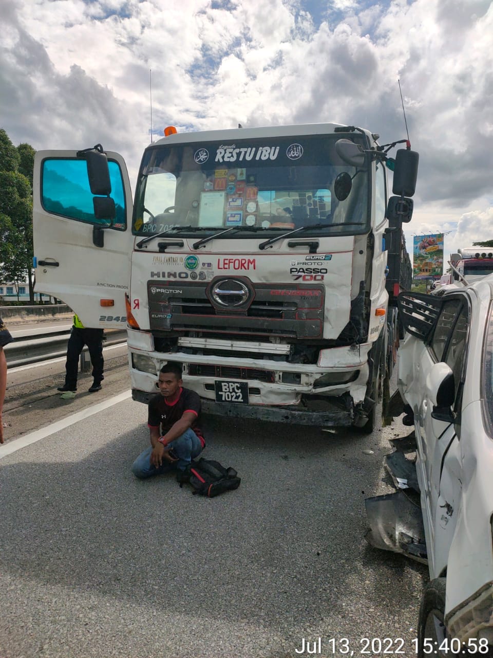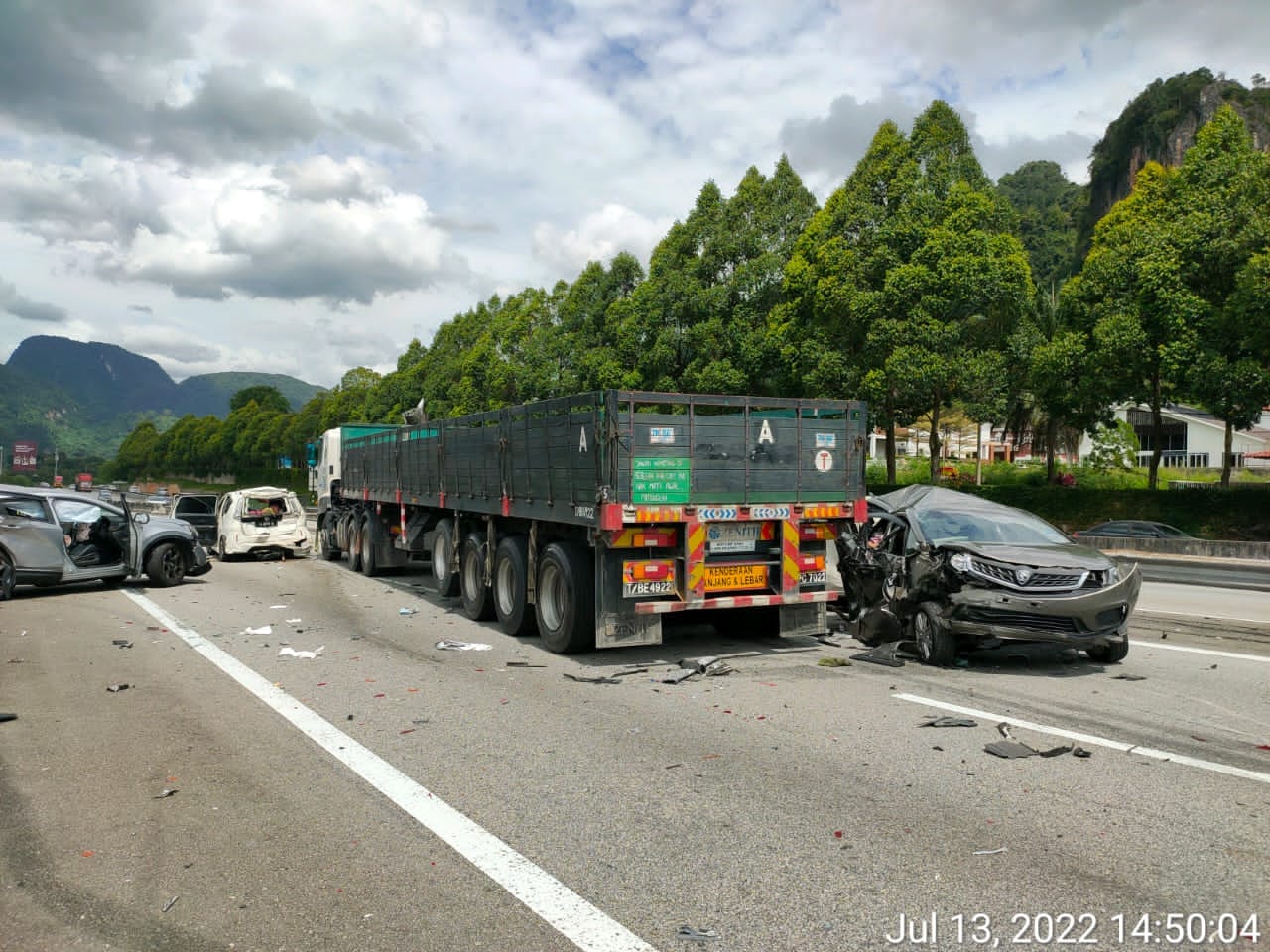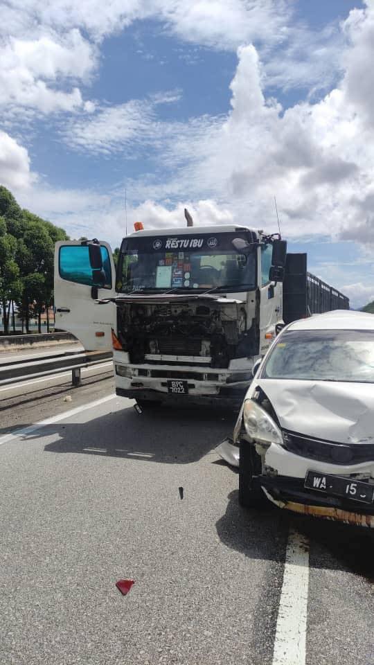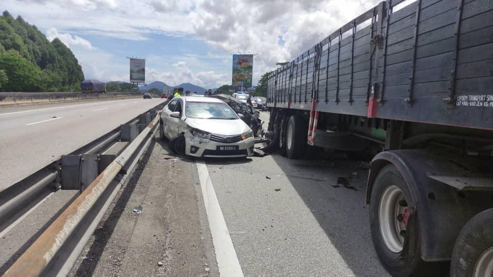 Menurut bomba, panggilan kecemasan diterima pada ham 3.02 petang semalam, dan di lokasi kejadian kemalangan berlaku melibatkan tujuh kenderaan, iaitu sebuah treler, dan enam kereta jenis sedan. Antara kereta terlibat ialah Proton Persona, Perodua Alza dan Toyota Camry.
