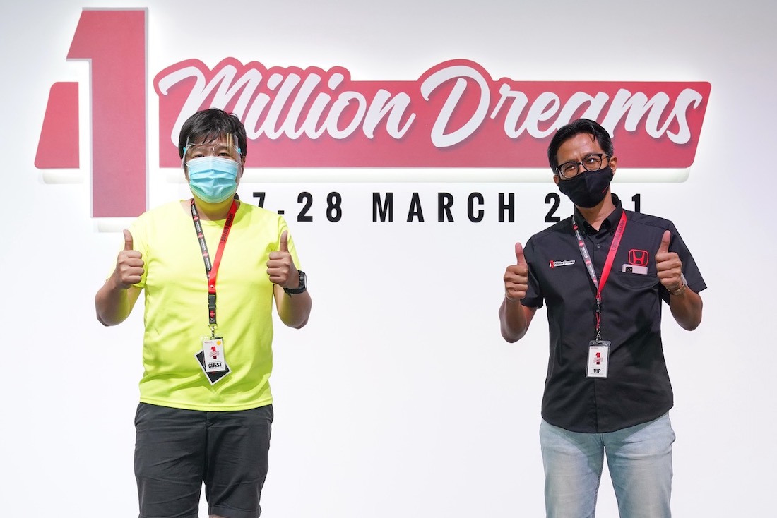 HONDA Malaysia mengumumkan empat pemenang kempen ‘1 Million Dreams’ pada hujung minggu lalu bertempat di perkarangan letak kereta C, Stadium Nasional Bukit Jalil, terdiri daripada tiga peserta peraduan dan seorang petugas barisan depan (frontliner) yang akan membawa pulang model Accord, Jazz, Civic dan CR-V.