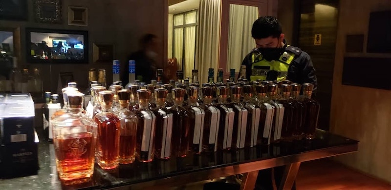 Polis turut merampas sebanyak 431 botol pelbagai liquor (jenis bahan minuman beralkohol) dianggarkan bernilai RM220,500 susulan kesalahan bawah Seksyen 76 Akta Eksais 1967 dan rampasan itu boleh dilucut hak bawah Akta Kastam 1967.