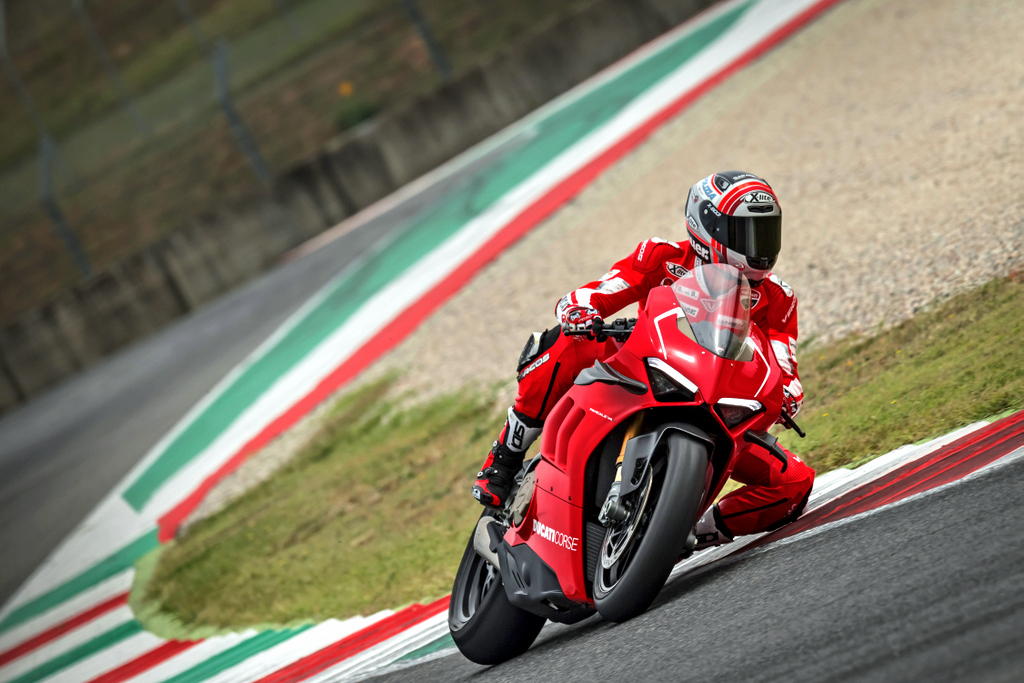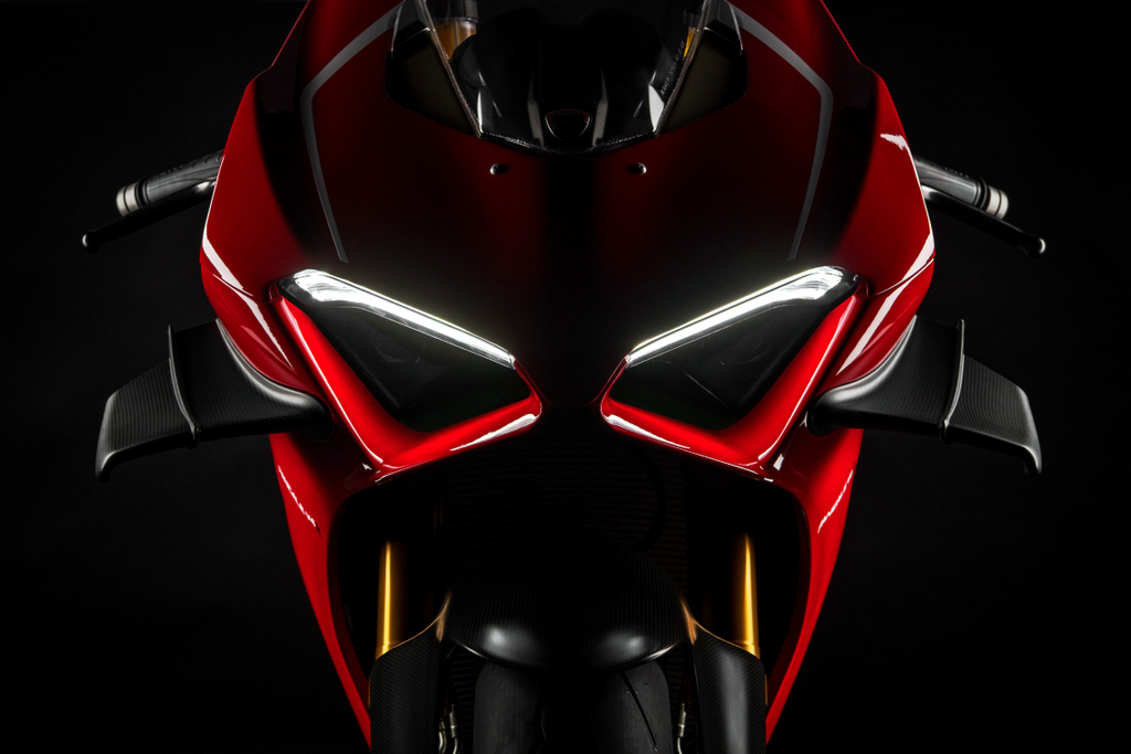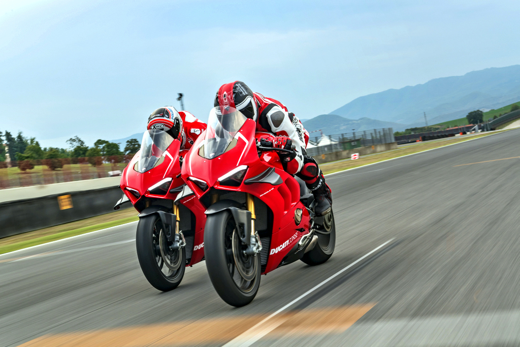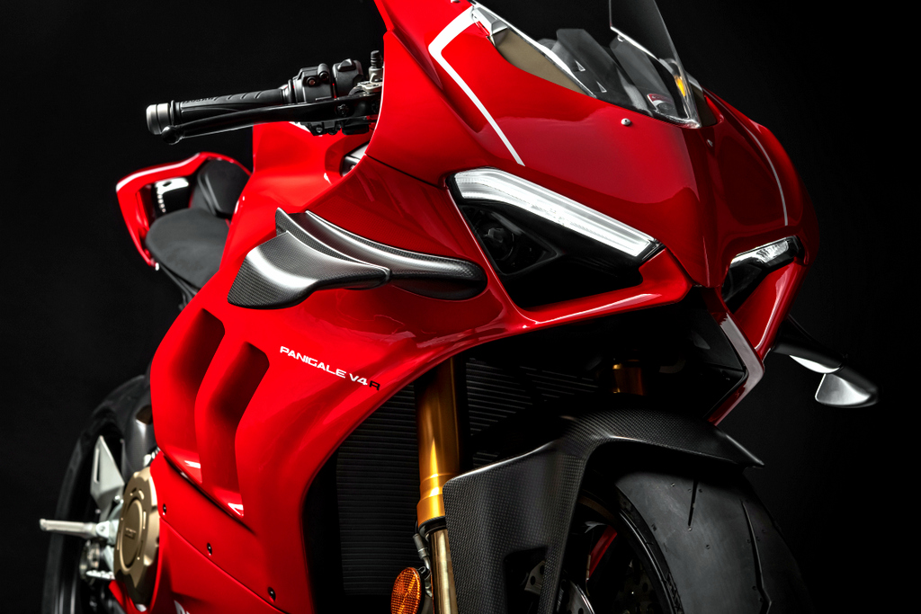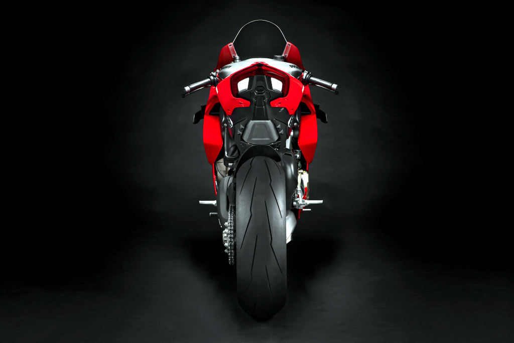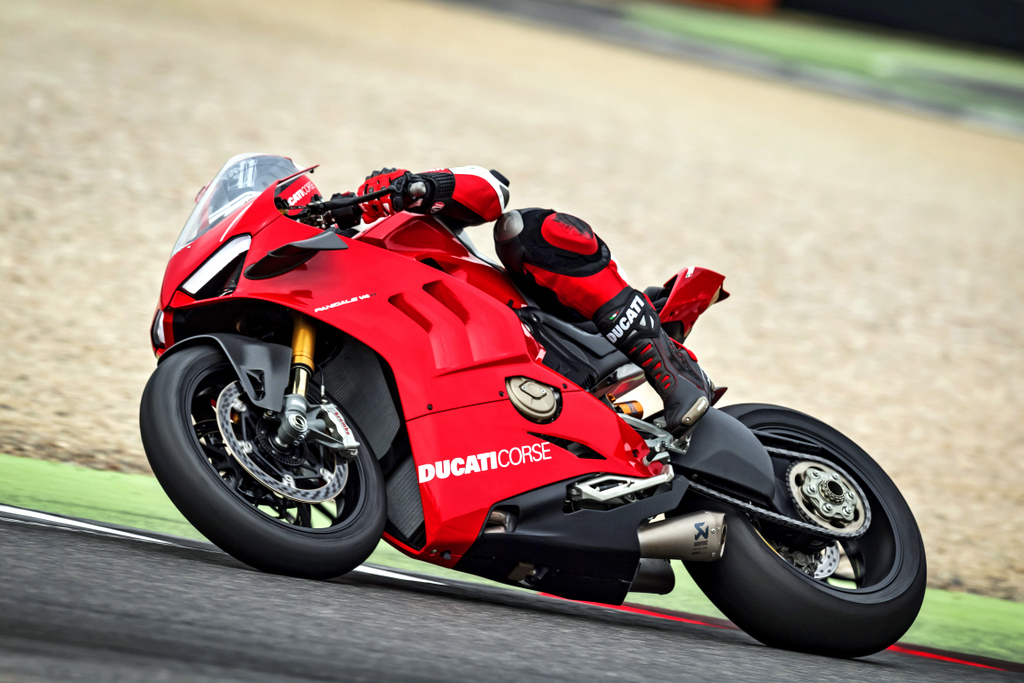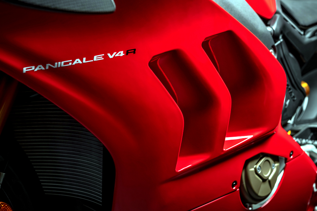 - Ducati Panigale V4 R dijana enjin 998cc Desmosedici berkuasa 221hp @ 15,250rpm dan tork 111Nm @ 11,500rpm. Apabila dipasangkan ekzos Ducati Performance daripada Akrapovic, superbike ini mampu menjana kuasa hingga 234hp @ 15,500rpm. Seperti V4 Stradale, silinder enjin 90º dimiringkan 42º dari horizontal.