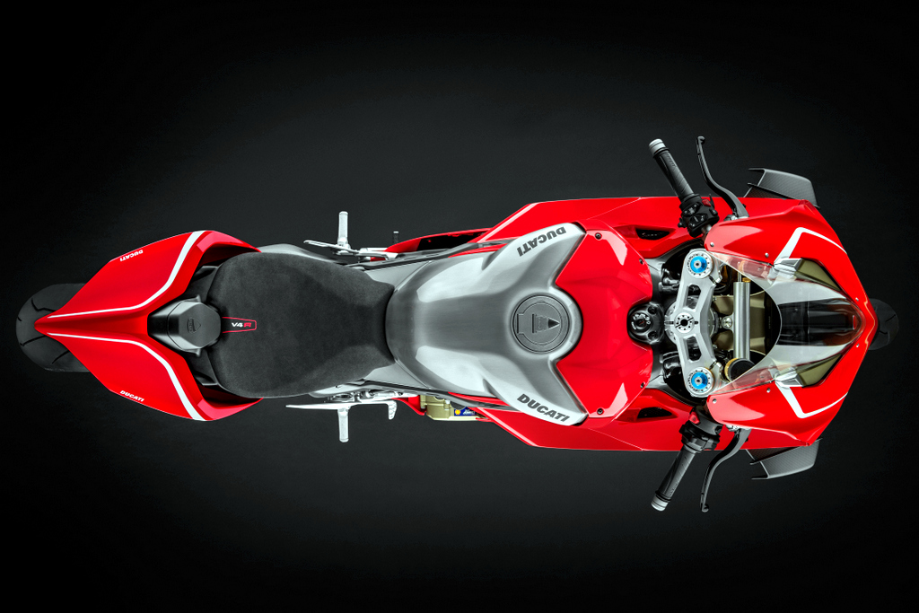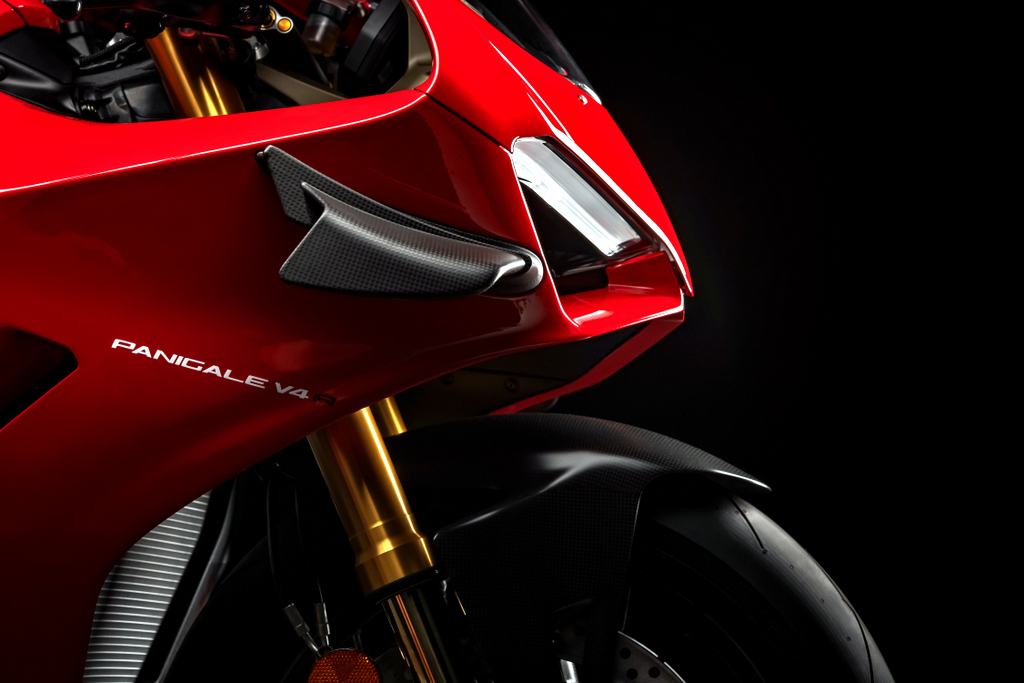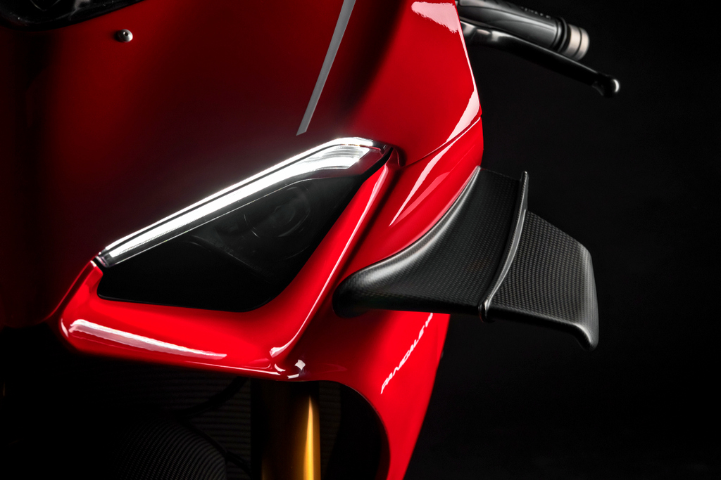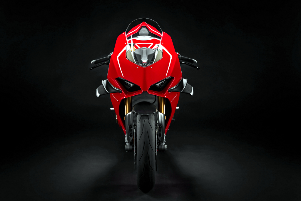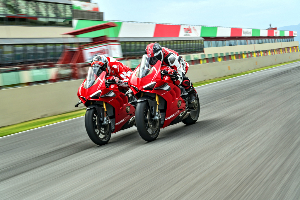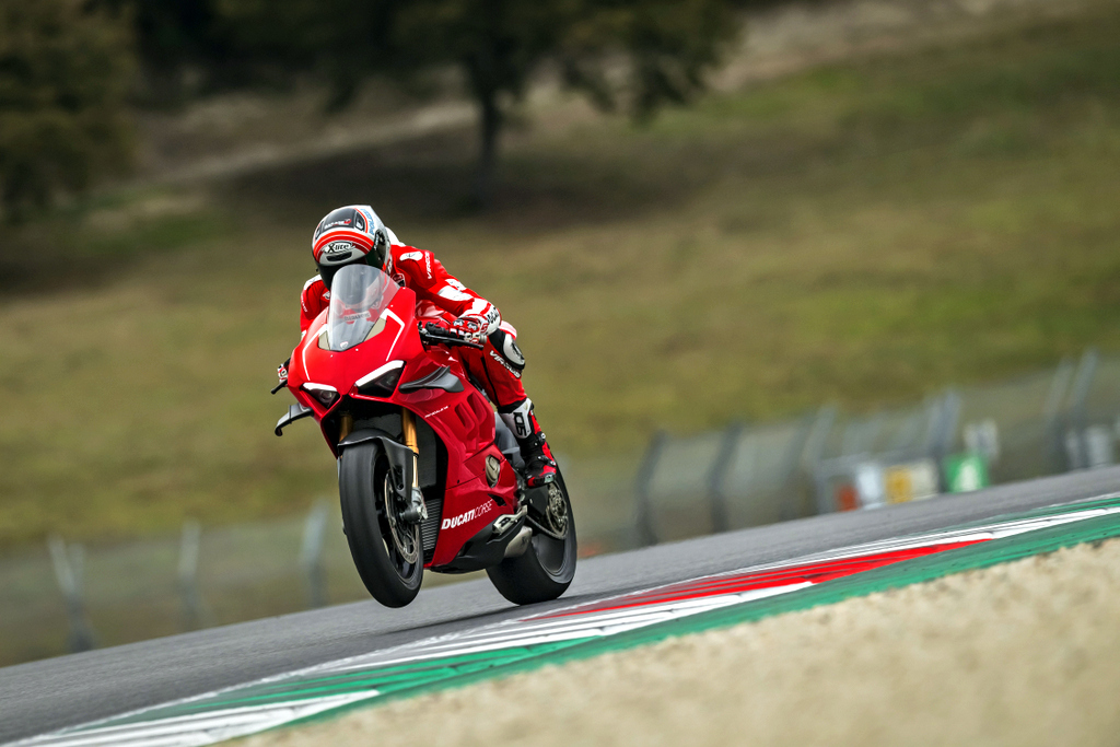 - Ducati Panigale V4 R dijana enjin 998cc Desmosedici berkuasa 221hp @ 15,250rpm dan tork 111Nm @ 11,500rpm. Apabila dipasangkan ekzos Ducati Performance daripada Akrapovic, superbike ini mampu menjana kuasa hingga 234hp @ 15,500rpm. Seperti V4 Stradale, silinder enjin 90º dimiringkan 42º dari horizontal.