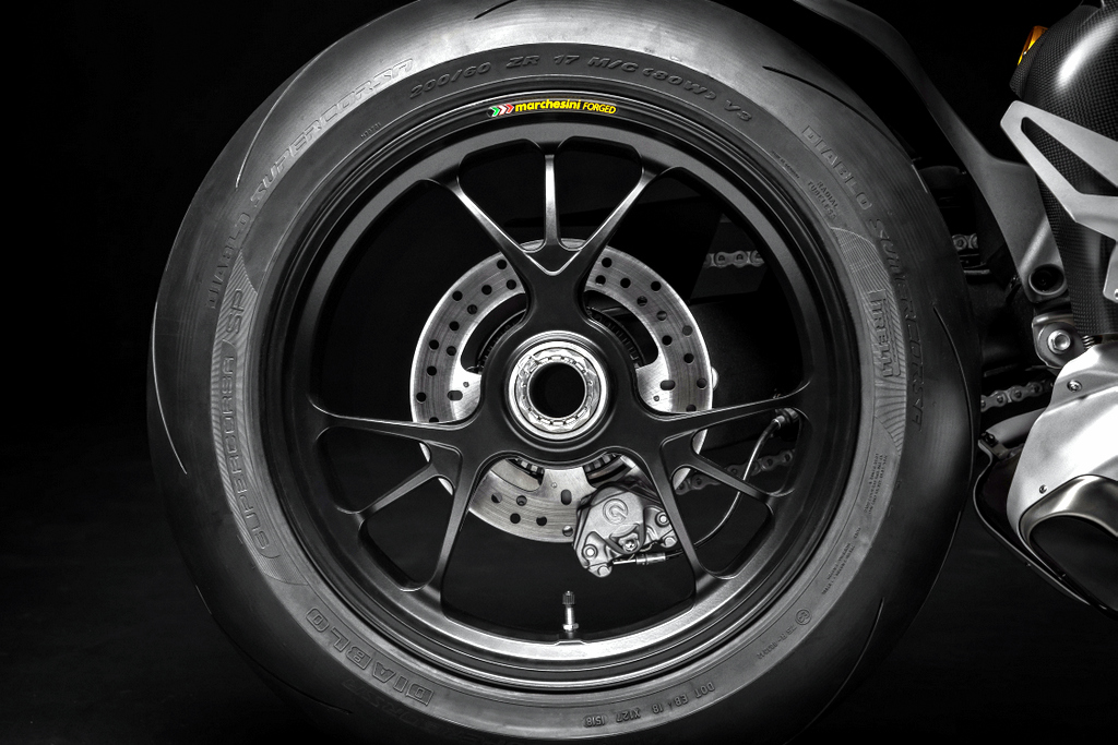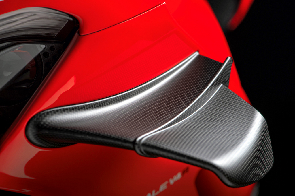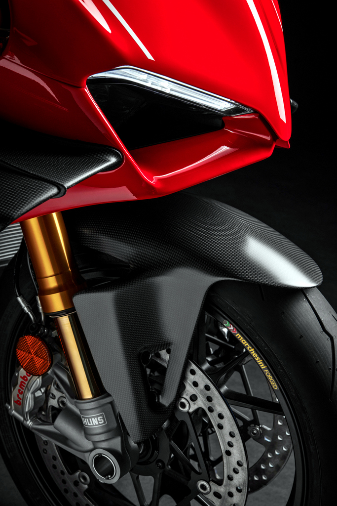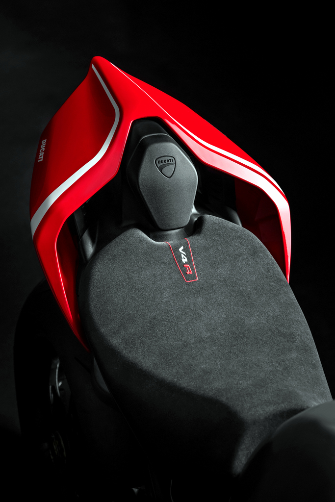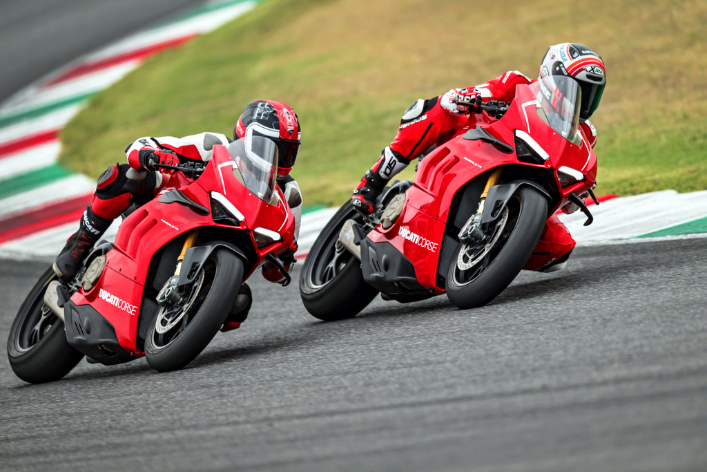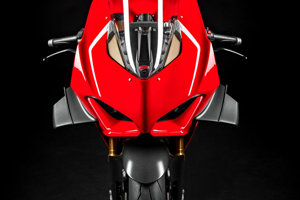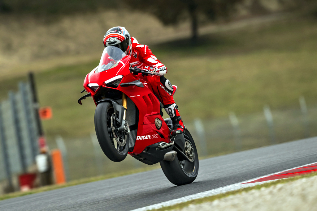 - Ducati Panigale V4 R dijana enjin 998cc Desmosedici berkuasa 221hp @ 15,250rpm dan tork 111Nm @ 11,500rpm. Apabila dipasangkan ekzos Ducati Performance daripada Akrapovic, superbike ini mampu menjana kuasa hingga 234hp @ 15,500rpm. Seperti V4 Stradale, silinder enjin 90º dimiringkan 42º dari horizontal.
