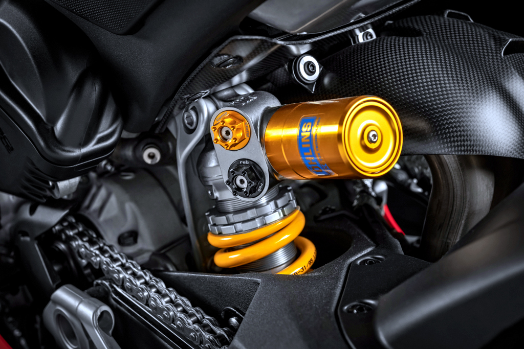 - Damper stereng Öhlins turut mengenepikan pelarasan elektronik bagi memberi ruang kepada alternatif mekanikal.