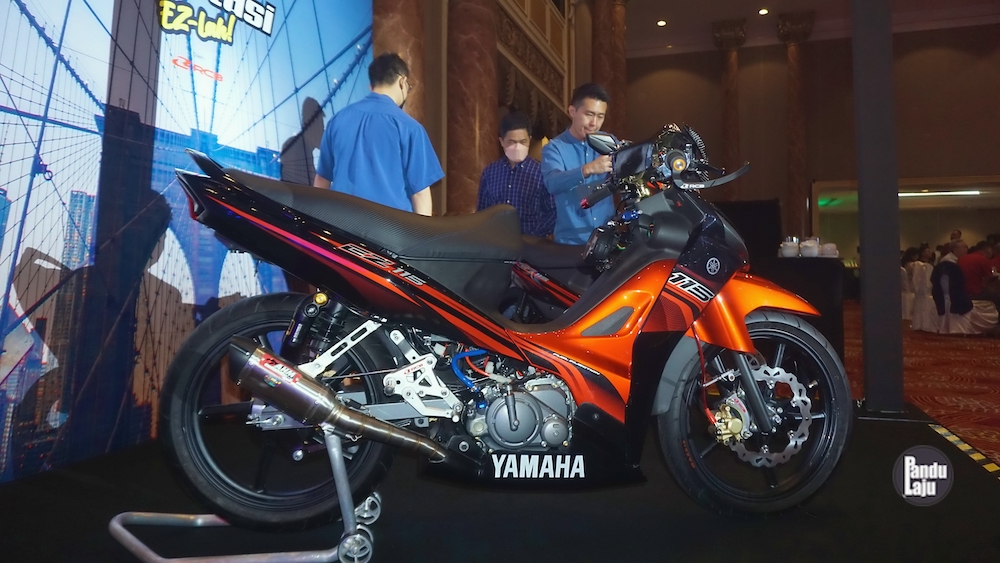 SEJURUS tamat majlis pelancaran Yamaha EZ115 (2023), Hong Leong Yamaha Motor (HLYM) mempamerkan tiga unit model kapcai itu yang sudah dipasang beberapa aksesori aftermarket jenama popular.