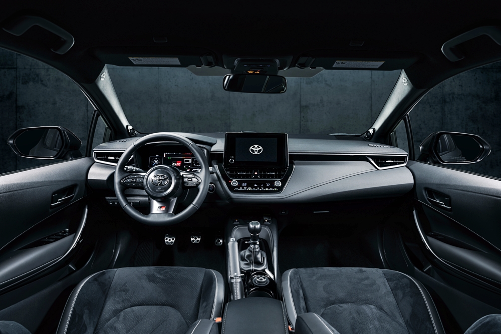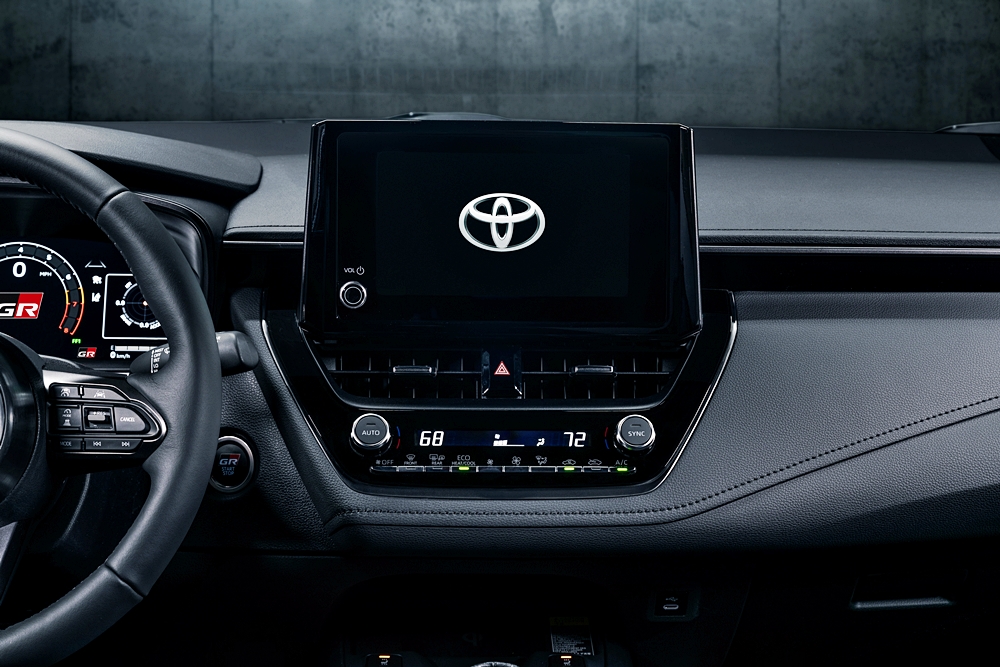 - Kluster instrumen TFT penuh yang dibangunkan khas untuk model GR dengan pengaruh kereta lumba dan input daripada pemandu profesional.
