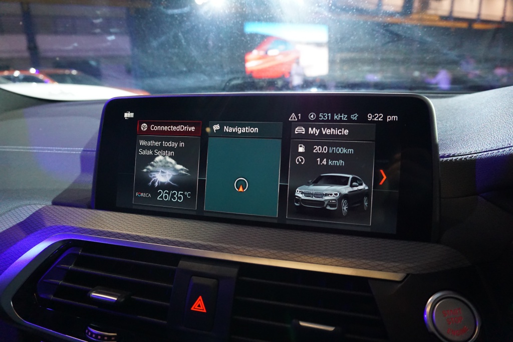 X4 baharu ini juga dilengkapi paparan dongak (HUD) berwarna resolusi tinggi (HD) 12.3-inci dan Paparan Instrumen Multifungsi (MID) dengan teknologi panel meter hitam BMW Black Panel. Kawalan suara untuk ciri BMW Voice Control turut dikemas kini untuk pengecaman bahasa lebih baik.