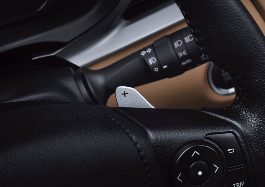 Varian TRD CVT menampilkan kemasan stereng kulit berserta pedal syif. Kotak gear CVT diberikan dua mod pacuan: Eco atau Sport. Kawalan penyaman udara kini dalam bentuk digital dengan mod auto, manakala Bluetooth, penghidup tanpa kunci @ keyless dan punat mula-henti kini menjadi ciri standard semua varian.