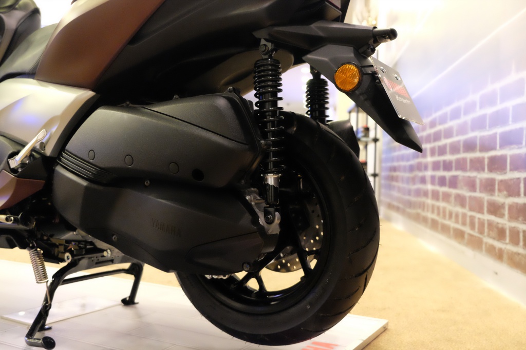 Dinamik tunggangan dan keyakinan membelok dibantu tayar depan bersaiz 120/70 R15 dan tayar belakang bersaiz 140/70 R14.