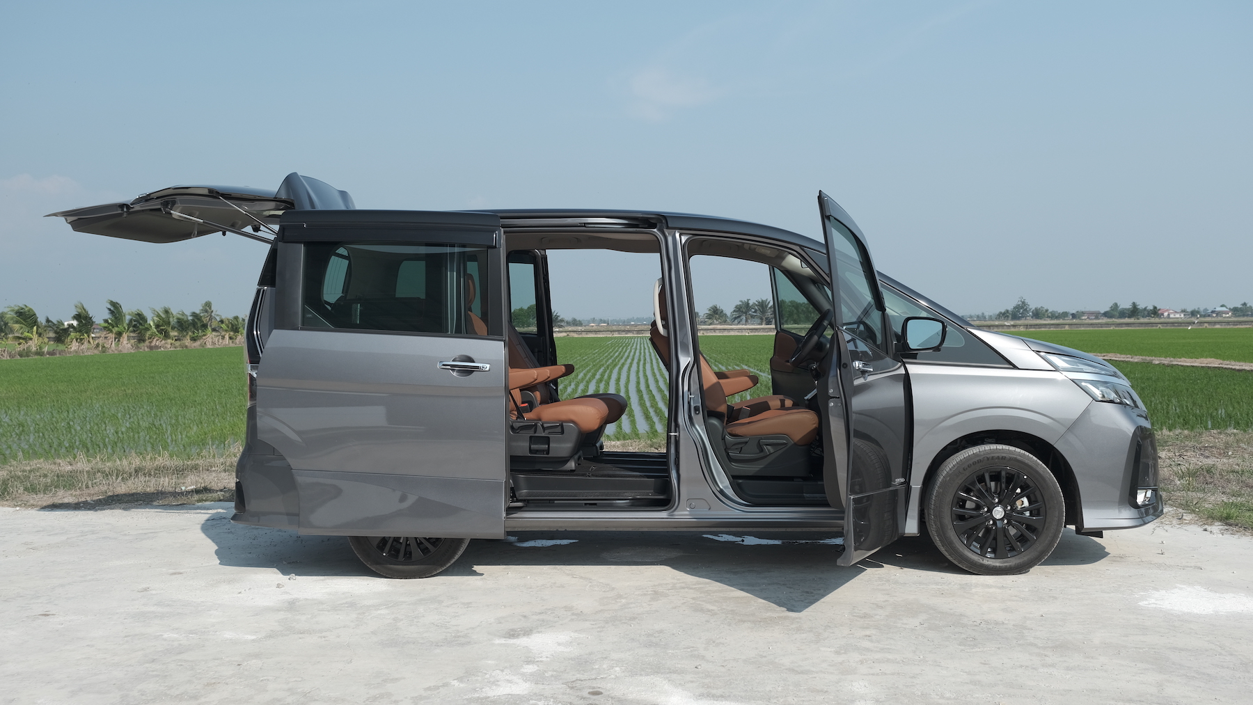 Serena S-Hybrid (2022) juga dilengkapi dua pintu gelangsar elektrik bebas tangan. Apa perlu anda buat adalah meletakkan kaki seketika di bawah pintu gelangsar dan pintu itu akan terbuka automatik. Malah pintu juga boleh ditutup semula dengan melakukan gerakan sama sama.