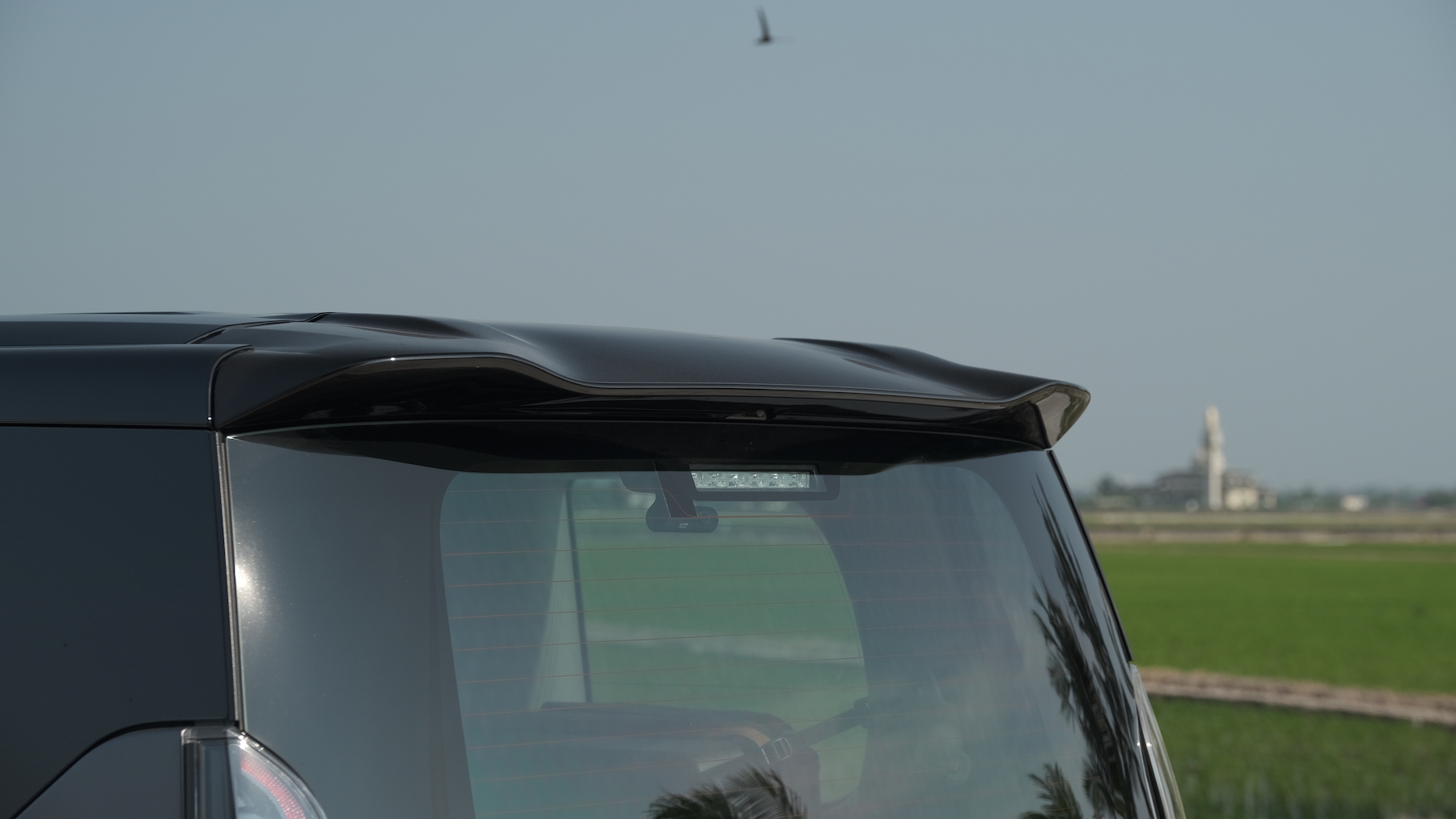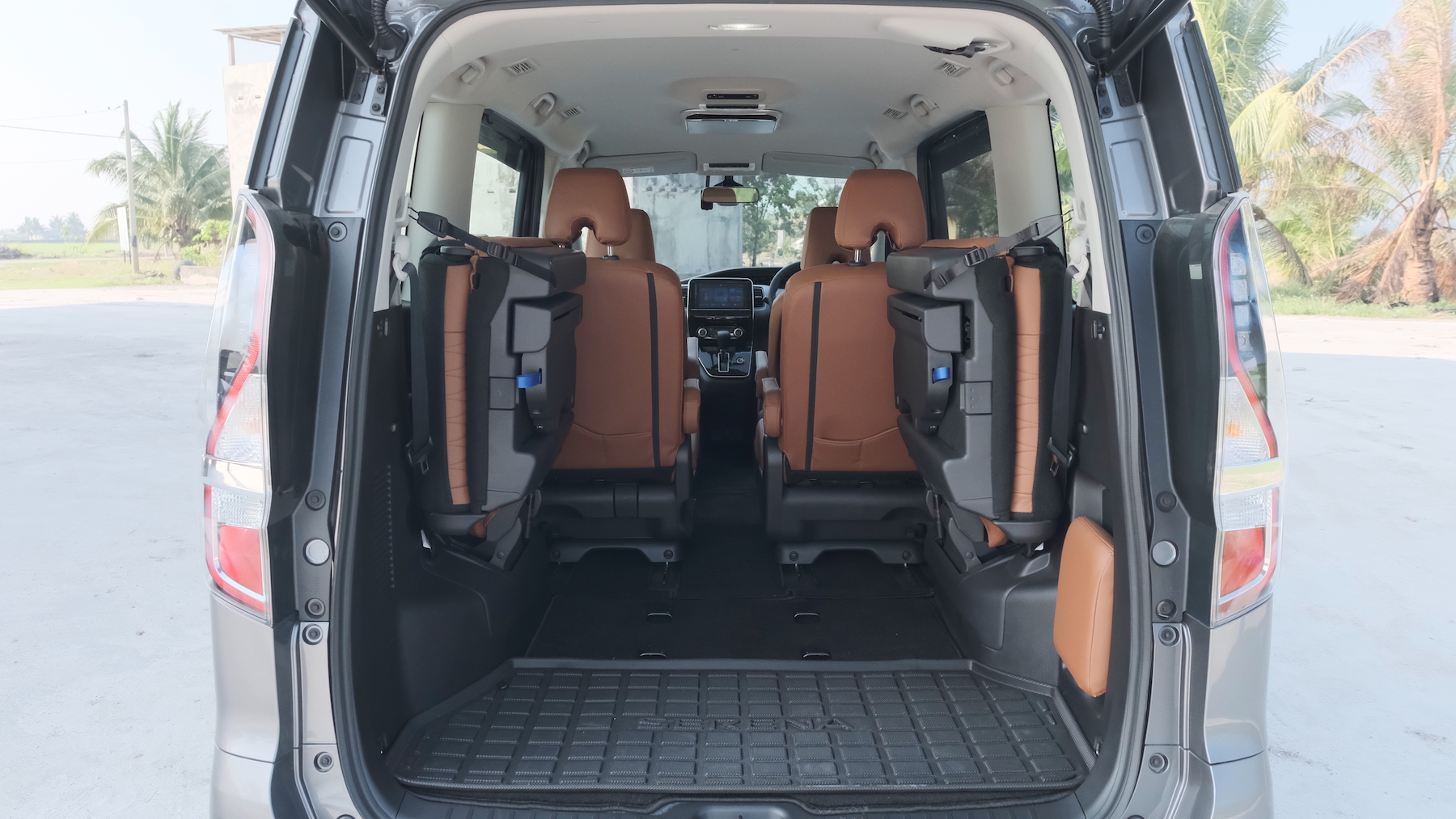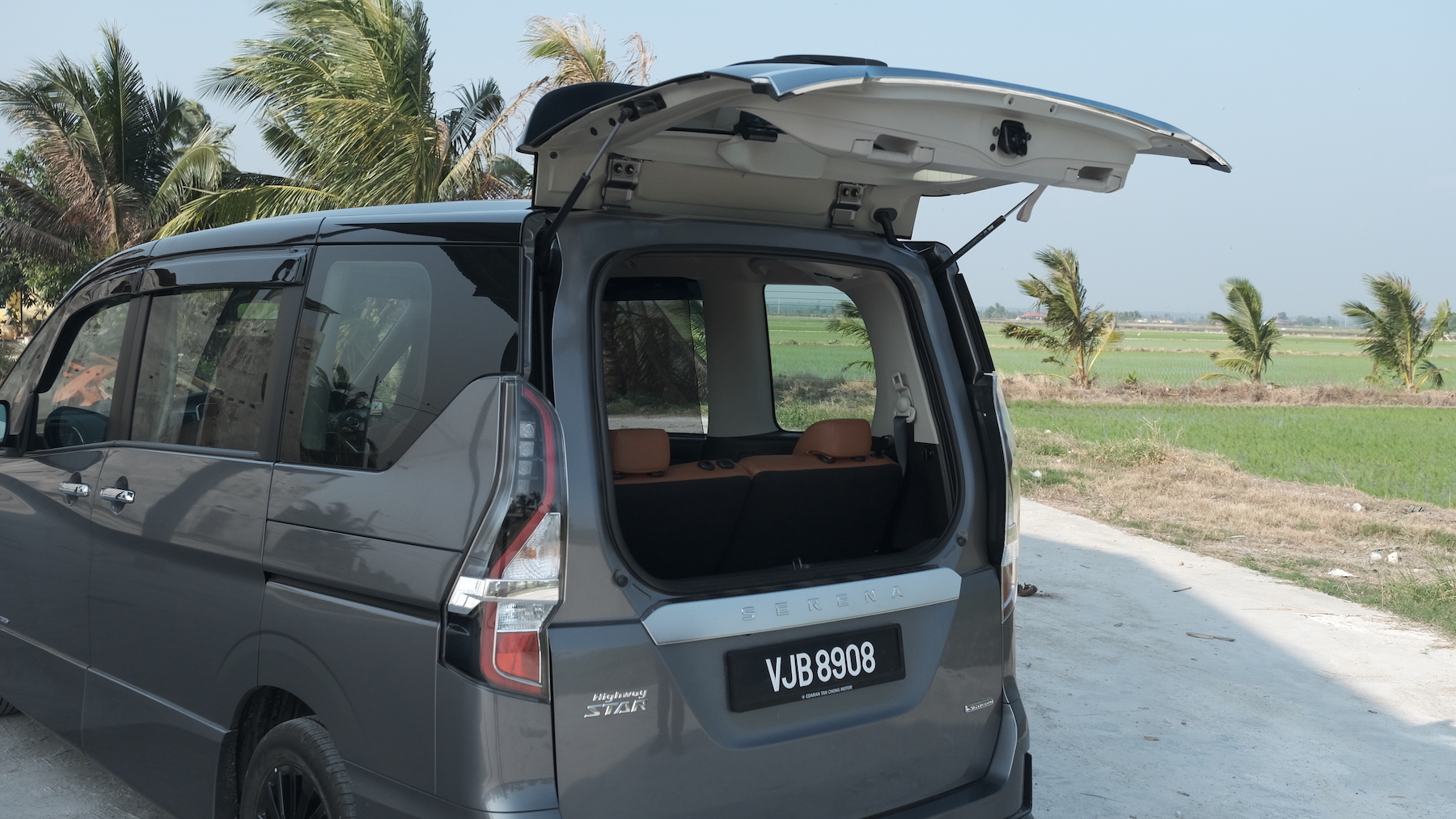 Pintu belakang juga unik kerana menawarkan dua konsep bukaan ke atas, iaitu separuh dan bukaan penuh. Ini satu-satunya MPV dengan pintu dwi-buka untuk kelebihan akses mengambil barang di belakang, terutama di kawasan parkir sempit.