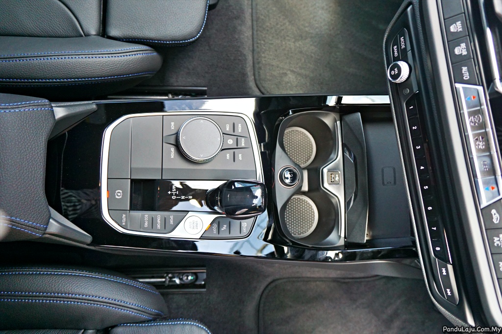 Konsol tengah menempatkan tombol gear, tombol kawalan iDrive (iDrive Controller), punat dinamik pemanduan dan punta tekan-mula (push-start). Di depan tersedia ruangan pemegang cawan dan ruang cas wayarles menerusi fungsi Telephony.