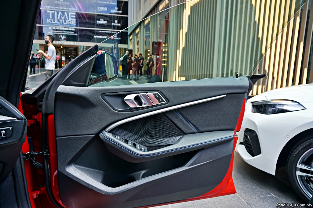 Lebih menarik, cermin pintu depan dan belakang tanpa bingkai menyerlahkan seni rekabentuk sempurna. Penampilan luaran dilengkapkan rim aloi ringan M Bicolor 18 inci dengan tayar ‘runflat’. Bahagian belakang pula disematkan lampu LED langsing dengan kemasan jalur hitam berkilat.