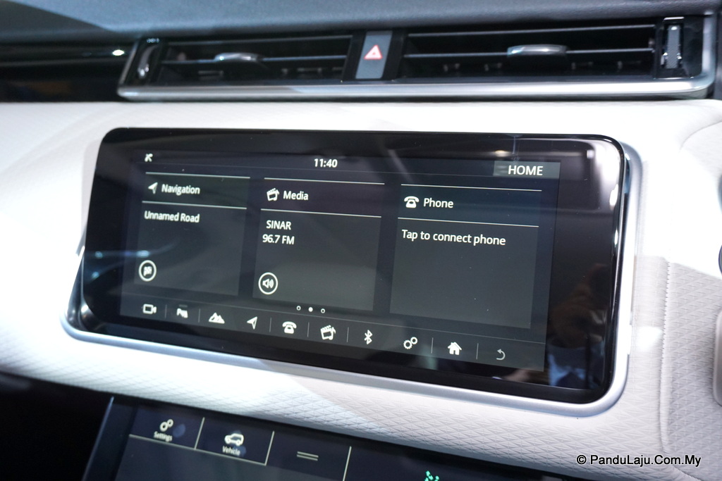 - Ruang kabin Velar dihidangkan sistem infotainment Touch Pro Duo dengan skrin sentuh 10-inci definisi tinggi (HD) bersama antaramuka futuristik, elegan dan intuitif.