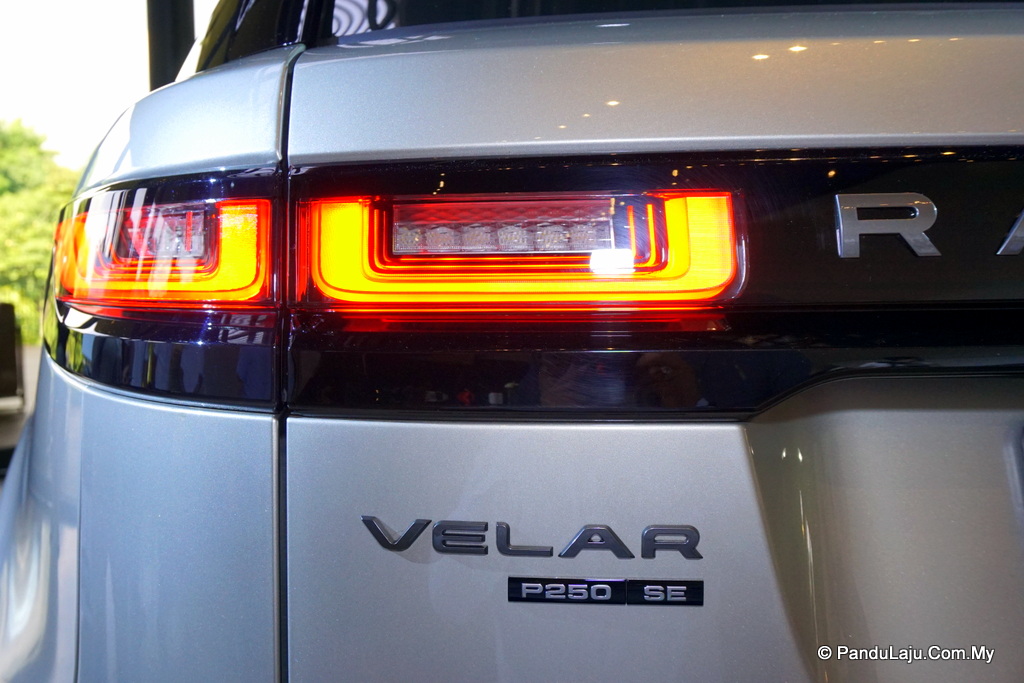 - Velar – lencana P250 di belakang, rim 20 inci rekaan tujuh jejari, bumbung standard, paparan kamera belakang, pedal gear berwarna hitam dan lain-lain lagi.
