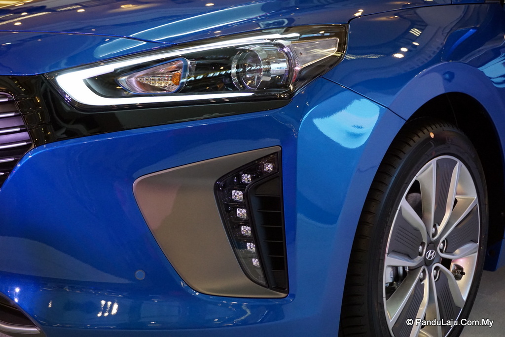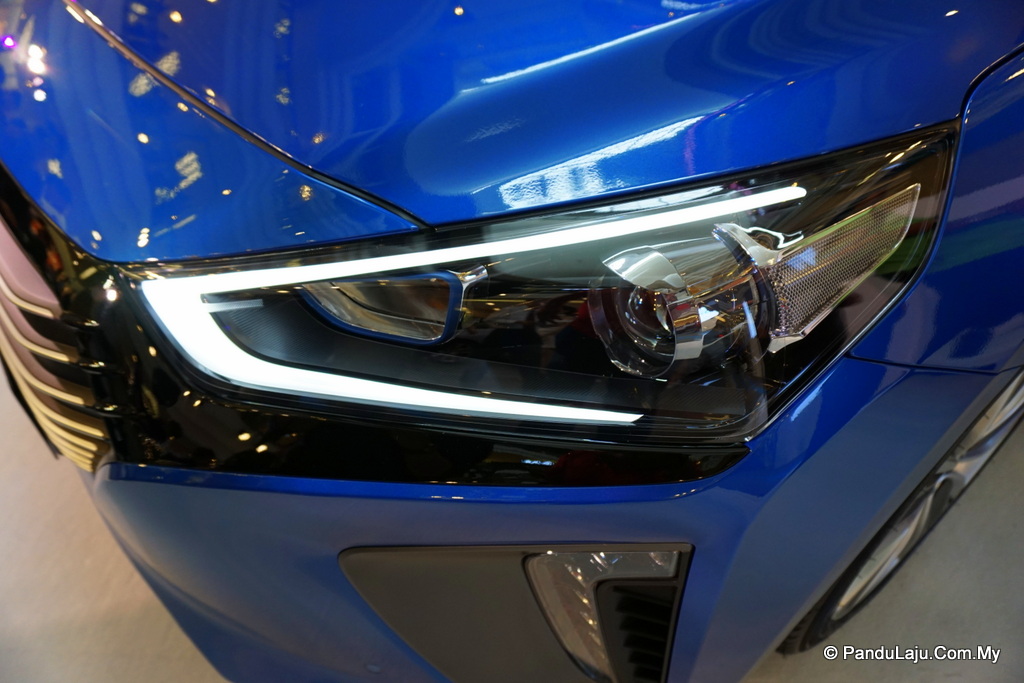Bagi varian tertinggi iaitu Hyundai Ioniq HEV PLUS, ia dipadanklan dengan lampu Bi-Xenon bersama lampui LED berbentuk C.