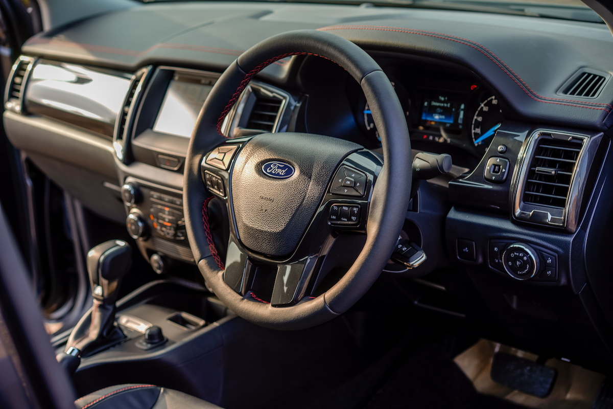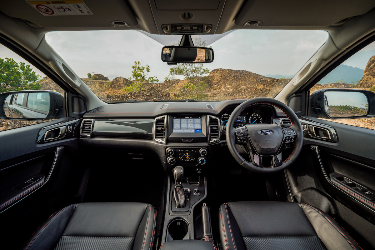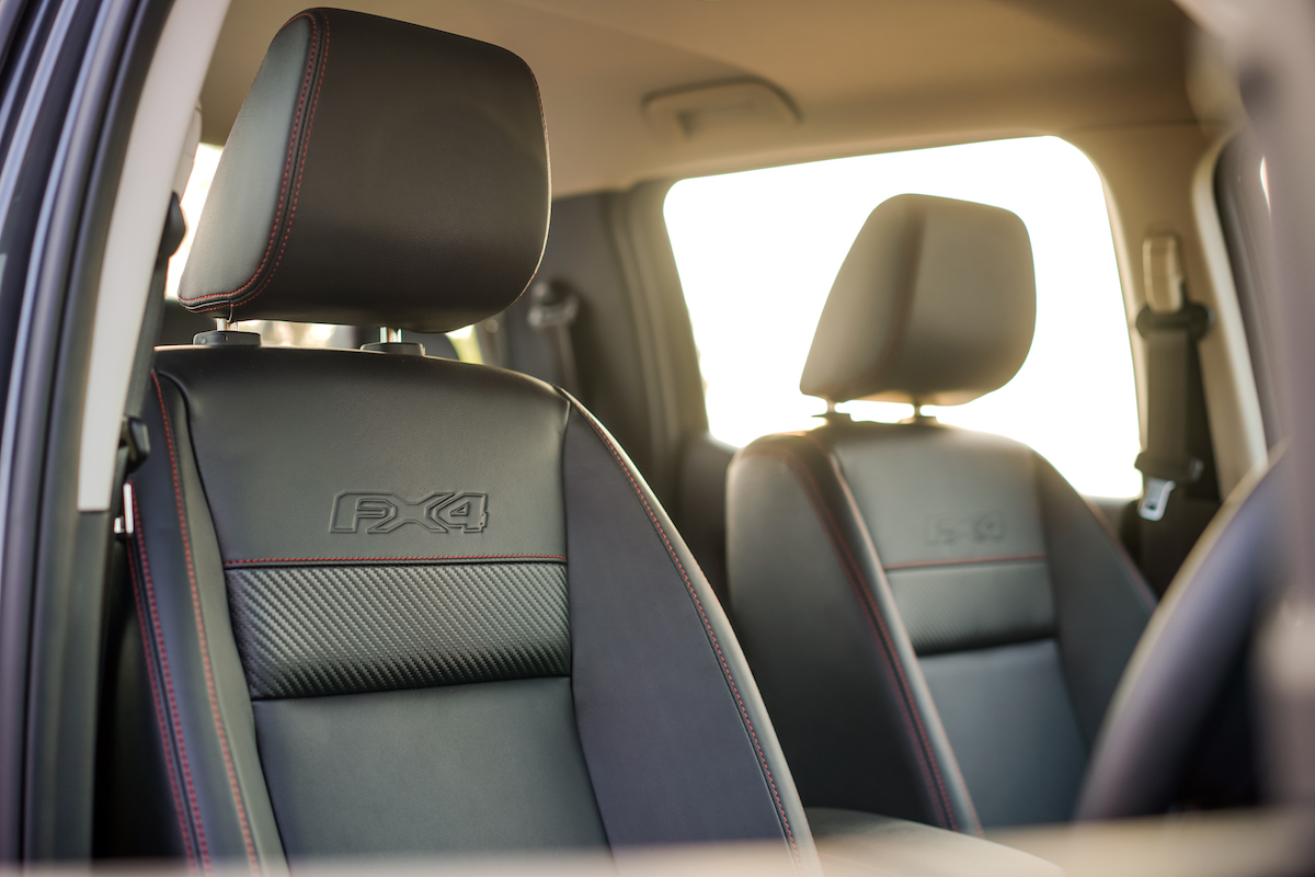2. Identiti Ranger FX4 dapat dilihat ketara pada ruang kabin dengan logo FX4 dicetak timbul pada kerusi kulit hitam dengan kontras sulaman benag merah pada tombol gear, konsol tengah, panel instrumen, kemasan panel pintu, brek tangan dan stereng. Juga ada karpet khas FX4.