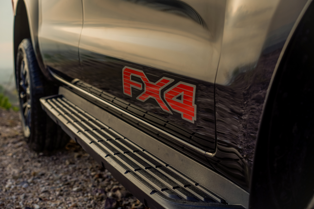 1. Menampilkan rekaan gril jejaring baharu Ebony Black (hitam) dan rim hitam berkilat dengan tayar jenis pelbagai rupa bumi (all-terrain). Pelekat dan lencana ‘FX4’ yang begitu menonjol menyerlahkan ciri tersendiri berbanding varian Ranger lain.