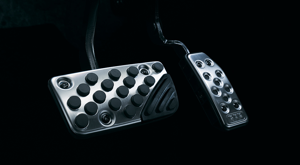 - Pedal sport, hendal pintu krom gelap, kemasan lampu kabus jenis jejaring (mesh).