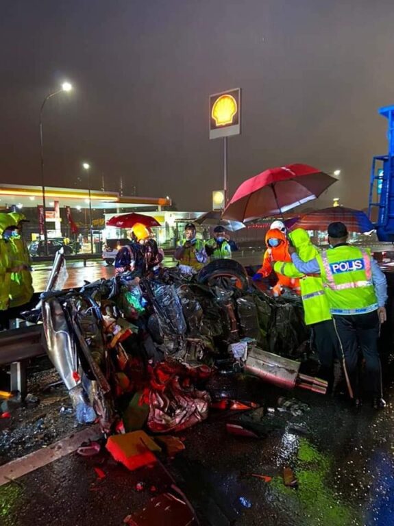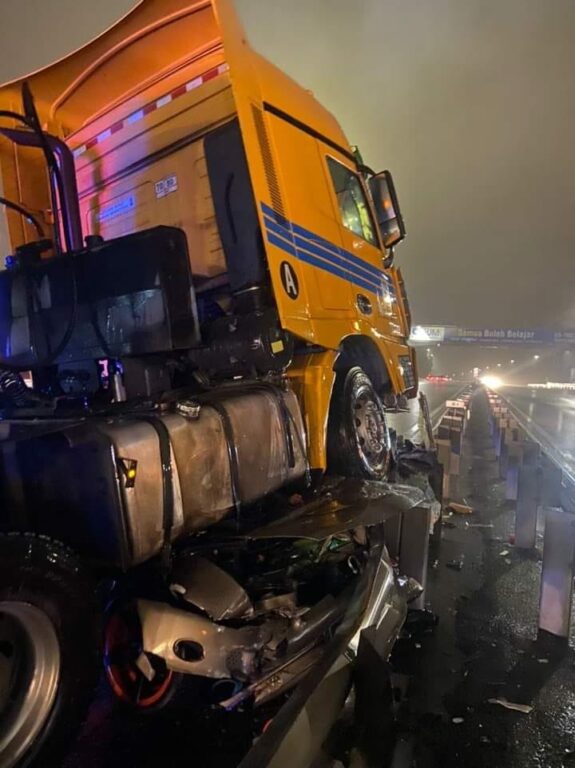 Kemudian datang sebuah treler dari belakang merempuh kereta mangsa dan kereta mekanik, termasuk sebuah Axia yang kebetulan di tempat kejadian. Insiden berlaku ketika hujan lebat.