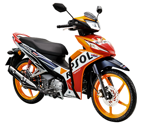 Rekabentuk premium ala Honda RS150R, siap dengan brek cakera di depan (kaliper 2-piston!), rim sport 5-jejari dan grafik strip menawan menjadi daya tarik utama kapcai ini. Memang nampak segak dan bergaya.