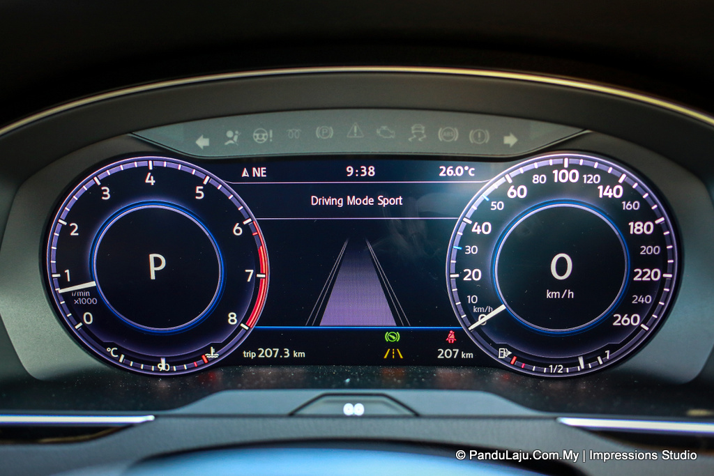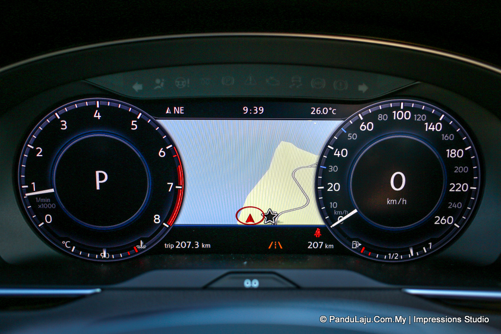 Hanya ditawarkan dalam varian 2.0L Highline, ruangan panel meter dipadankan dengan Active Info Display. Paparan meter digital ini turut digunakan pada kenderaan Audi.
