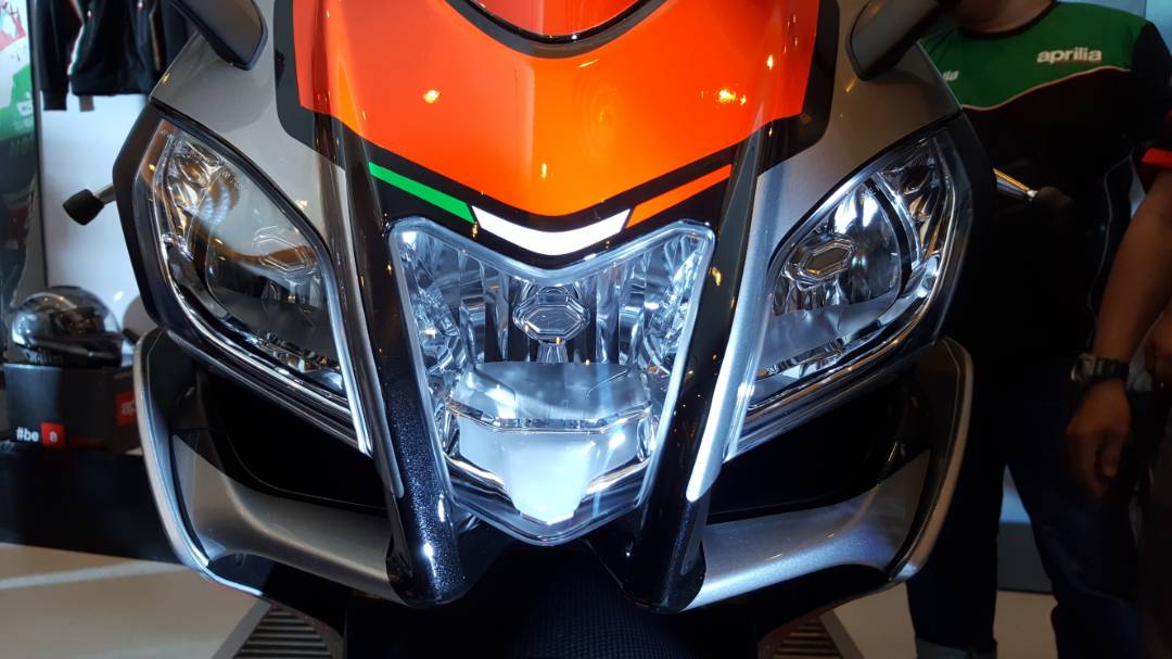 Jentera supersport itu tampil sporty menerusi rekaan tiga lampu utama terpisah. Rekabentuk berkenaan ialah ciri khas model Aprilia dan turut didatangkan dengan ciri LED untuk pencahayaan lebih terang.