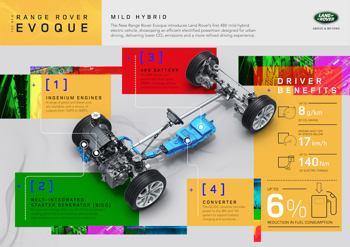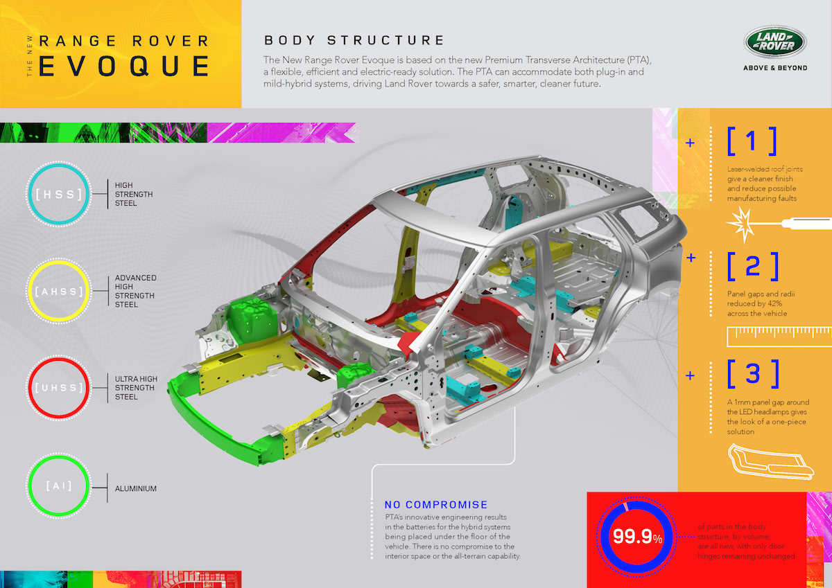 1. Rekabentuk model asal Evoque dapat dikesan menerusi siluet coupe. Model baharu itu kini didatangkan dengan lampu depan dan belakang LED tirus. Hendal pintu akan dikeluarkan automatik apabila kunci pintu dibuka, seperti model Velar.