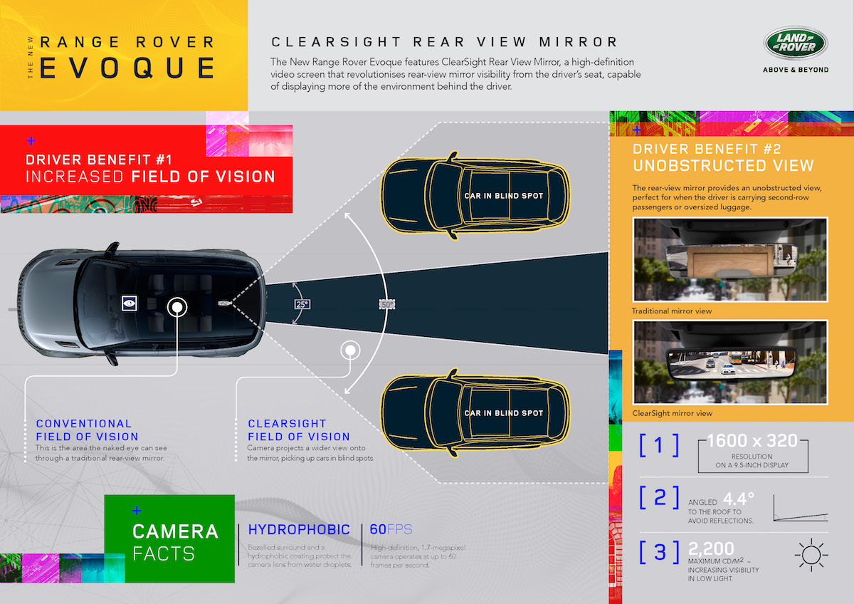 2. Teknologi cermin pandang belakang pintar, dinamakan ClearSight Rear View Mirror (CSRVM) menggunakan skrin video definisi tinggi (HD) dengan sentuhan buatng. Paparan dari kamera hadap belakang akan dipaparkan terus pada cermin, dan pemandu dapat terus memantau situasi belakang kereta tanpa halangan objek seperti penumpang belakang dan barang besar.