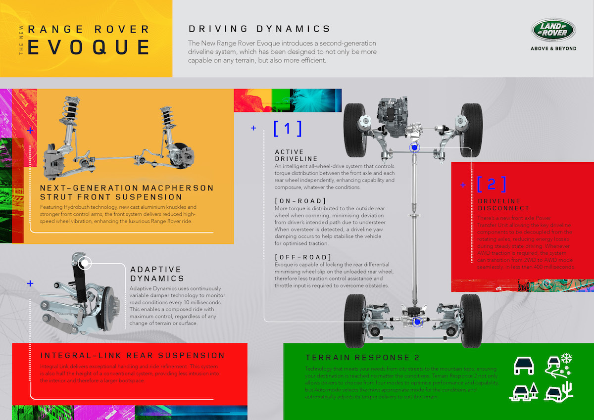 8. Evoque (2020) baharu menawarkan enjin petrol 2.0L Turbo Ingenium baharu yang menawarkan respons pantas kepada input terotel dengan transmisi automatik 9-kelajuan.